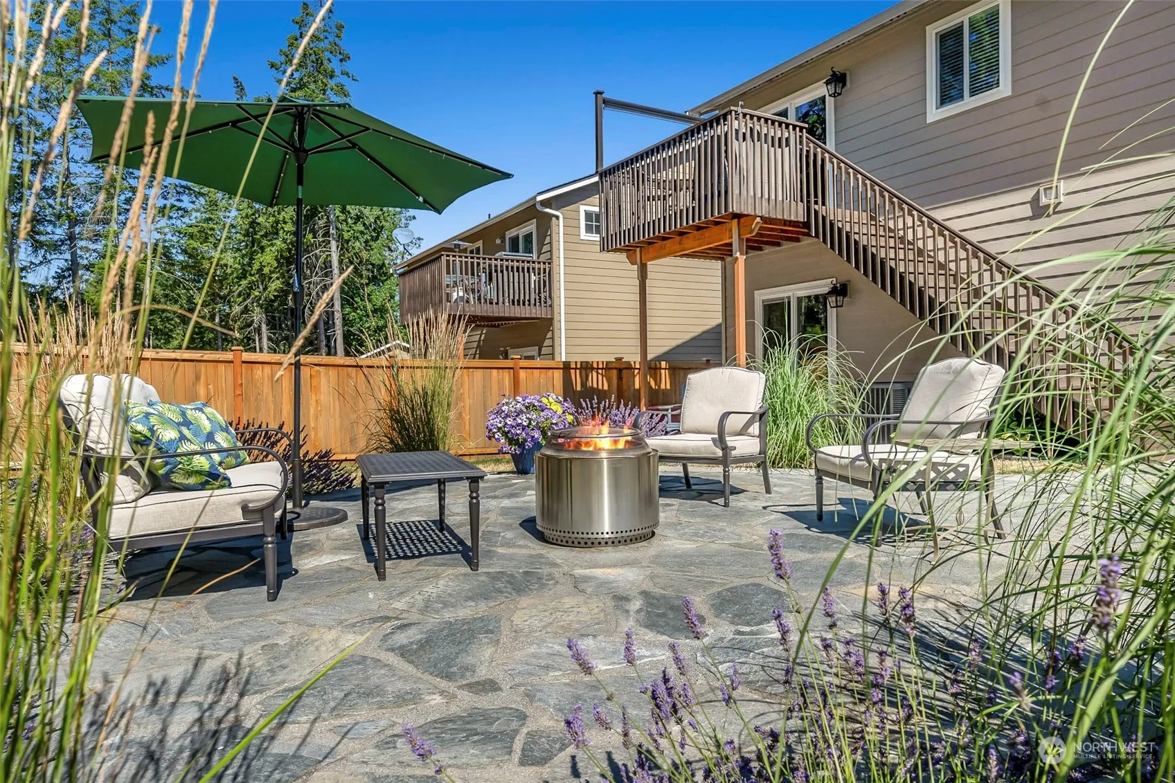 This gorgeous home features fantastic water, mountain and city views. Step inside this meticulously maintained home and be welcomed by soaring ceilings in the living room, beautiful fireplace, & open concept living.Extra lge windows take full advantage of all the views. Stay cool with energy efficient air conditioning! 4 bedrooms, plus office/bonus and large family room. Designer cabinets, sleek recessed lighting, beautiful new lifetime LVP flooring in LR, Kit, stairs and hall, SS appliances, and quartz countertops!All this on a .5 acre fenced yard with gorgeous flagstone patio and 2 decks! Loads of extra storage space. This home represents all the finest Camano Island living has to offer with beach rights for all your crabbing and boating!