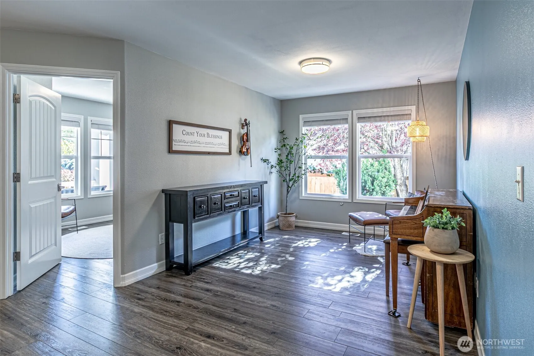 This beautiful 3,040 sq ft Brookwater home features an open floor plan including new (2020) main level flooring, updated blinds, & kitchen renovation with quartz countertops, stainless steel appliances, walk-in pantry & abundant cabinetry. Office/den on the main offers flexibility for remote work, hobbies, or a quiet study space. Upstairs you’ll discover a spacious primary suite and 4 other bedrooms, three with walk-in closets. Enjoy a new roof (2023), fully fenced backyard with new fence (2025) backing to green space plus an expansive patio for entertaining & room for your toys, boat and/or RV. Prime location close to hwy 410, schools & minutes to shopping, dining & Lake Tapps recreation.
