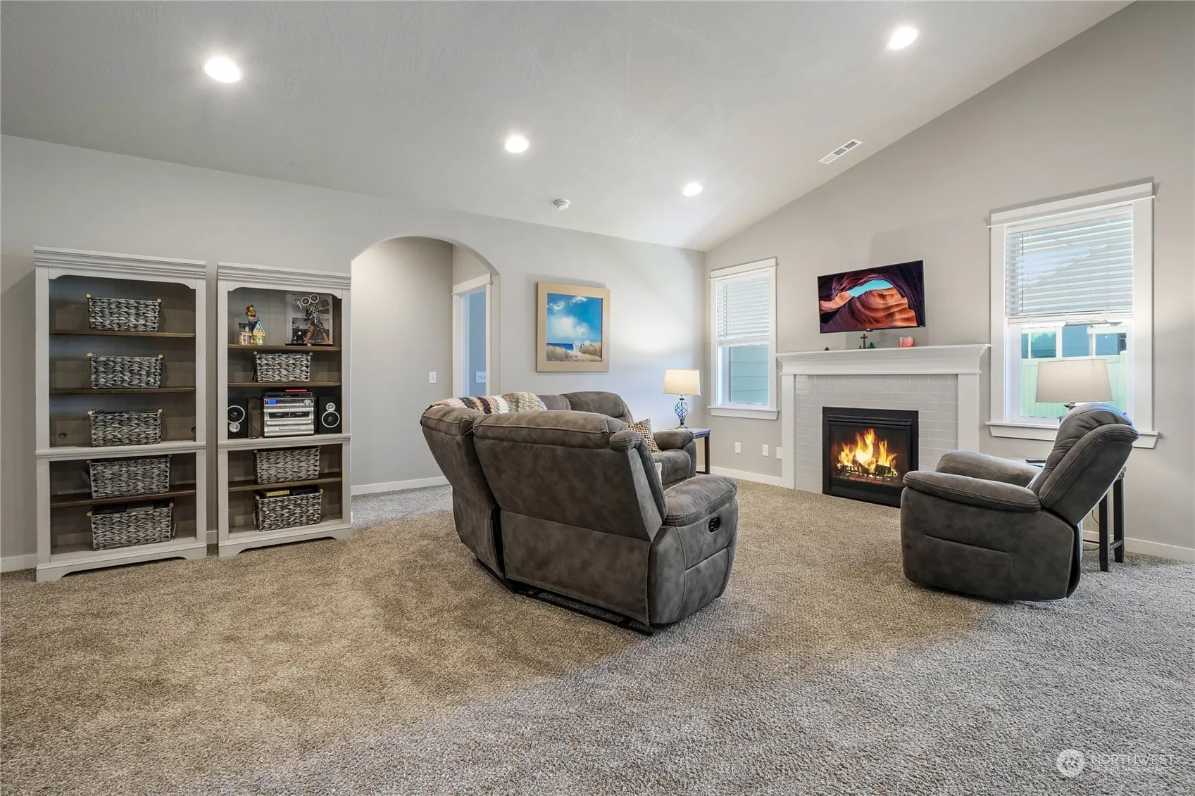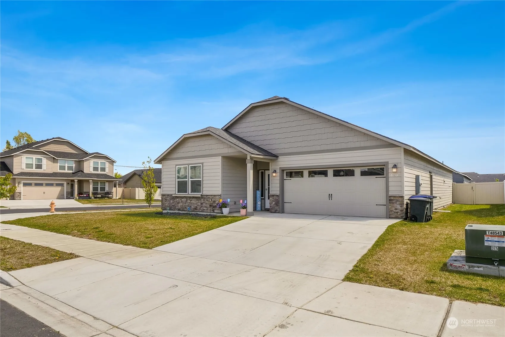 Location of this home is perfect! Close to Blue Heron park for your outdoor fun and games. Built in 2021 this 3-bed 2-bathroom beautiful rambler w/ office (that could be a 4th bedroom) has a closet w/ french doors. 2-car garage – 4′ extension. Exterior features include, stone front, vinyl fence, brand new sod in back, fully landscaped lot with irrigation, covered back patio. Interior features include: vaulted ceilings in living room, propane fireplace, wine fridge, full tile backsplash, stainless steel appliances, new dishwasher, oversized pantry, primary bedroom with 5-piece bathroom suite w/ soaking tub & shower, large walk in closet! Don’t miss out on this well priced home.