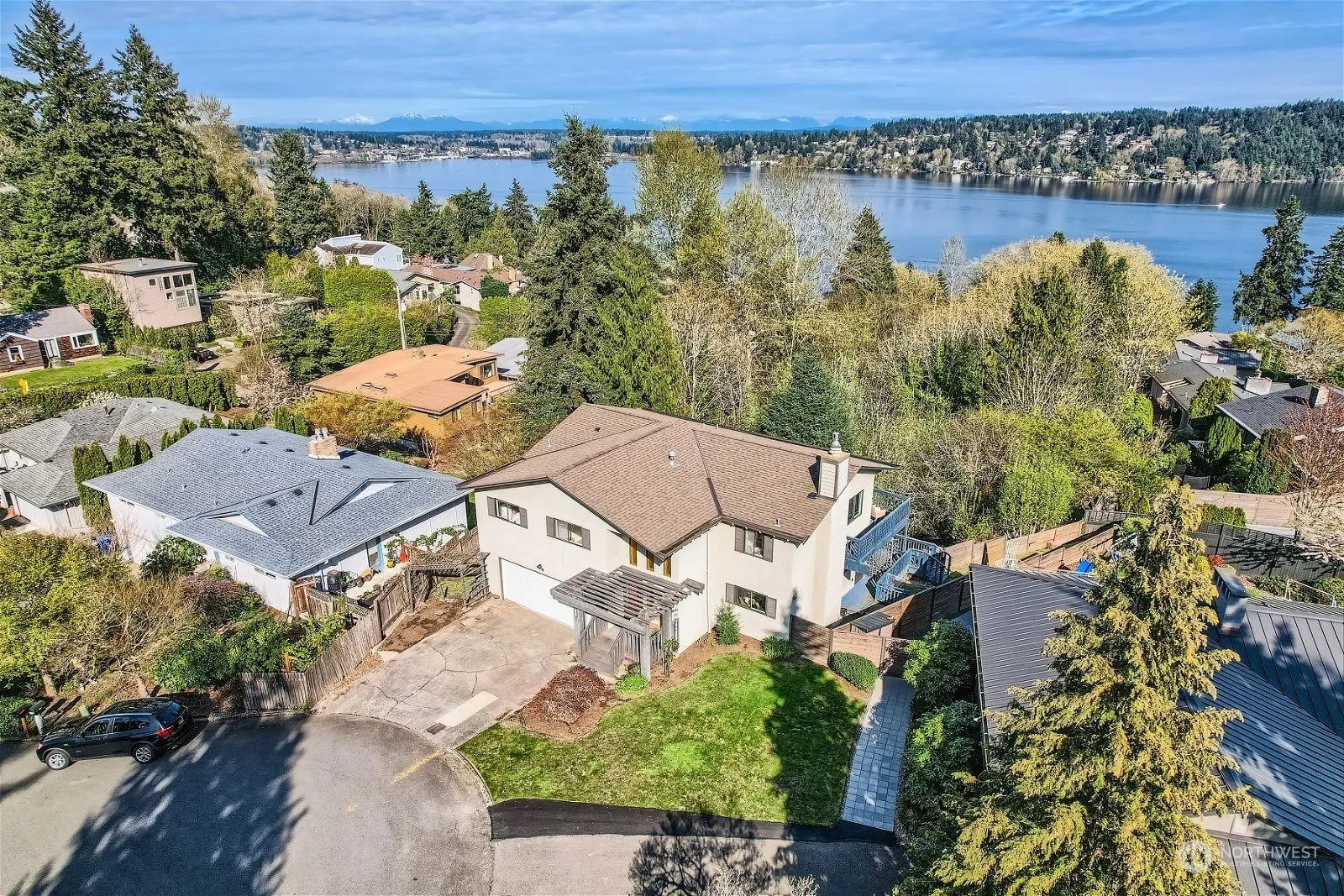You’ll love all the space! This unique 4 bed, 2.75 bath home has a full kitchen on each floor. Downstairs has separate entrance, perfect for multi-generations or Airbnb. Watch the eagles and seaplanes as you enjoy your view of LK WA from the expansive open floorplan upstairs, with refreshed kitchen, generous primary suite, plus 2 add’l bedrooms and main bath. Downstairs you’ll find open concept living with toasty gas FP, updated kitchen with granite, all new flooring, updated full bath, 1 bed/office, and laundry. Enjoy outdoor living with 2 decks, dog run, terraced garden ready for your ideas. Big 2-car garage. New Roof, Furnace, WH and more in 2021, but room for your own updates. Close to B-G Trail, transit, and Town Center. Make it Yours!