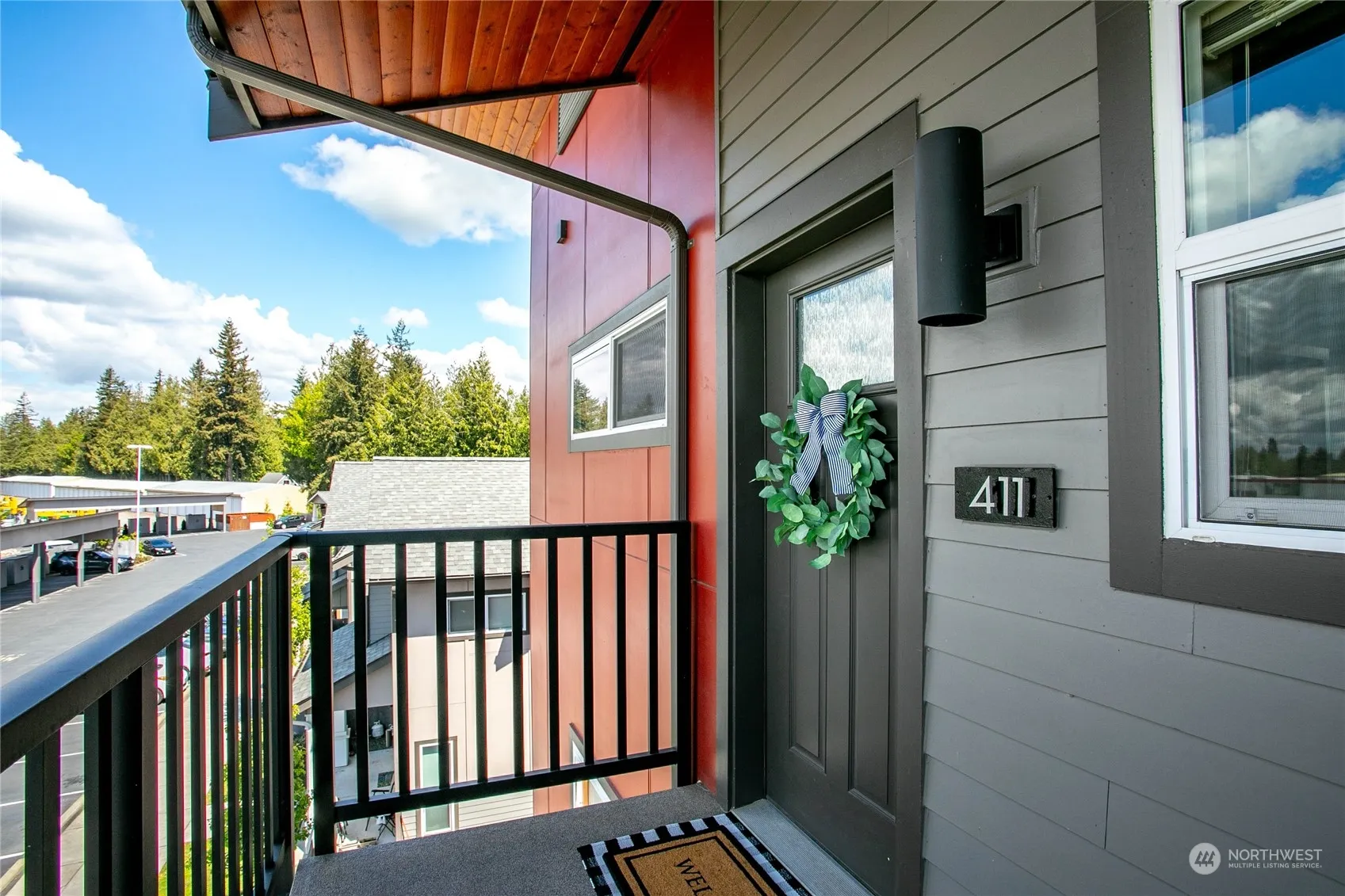 Light and bright, top floor end unit! Welcome home to your airy 2 bedroom condo in the heart of Lynden. With windows on three sides of the unit and vaulted ceiling in the living room, you will always enjoy the natural light and fresh breeze even on those grey PNW days. Built in 2020, this unit still feels fresh and new with quartz countertops, stainless appliances, and new washer/dryer in 2023. Relax on your private balcony, overlooking a tranquil green space with a creek down below, and the mountains in the distance. Ideal location close to restaurants, shopping, and easy access to the Guide Meridian and Canadian border. Low HOA dues cover central hot water, W/S/G, grounds maintenance. Designated covered parking space + storage unit.