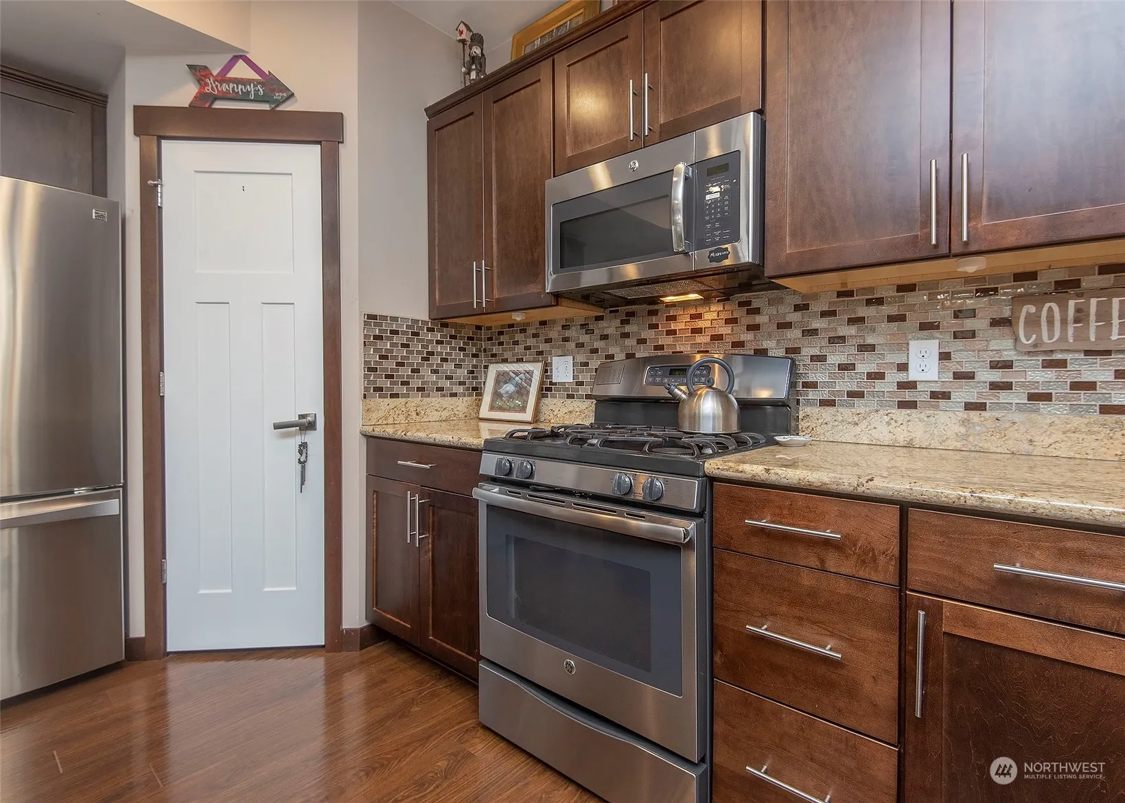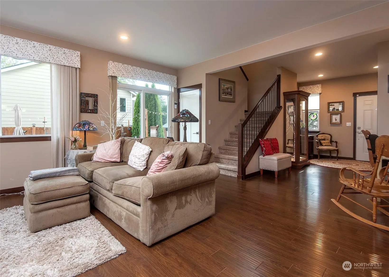 Enjoy summer in the enchanting garden of this 3 bedroom, 2.25 bathroom home, ideally situated in South Lake Stevens. The home’s open living concept beckons with a welcoming spacious entryway and luxurious engineered hardwood floors throughout. The heart of the home is the island kitchen boasting granite slab countertops complemented by additional recessed and above cabinet lighting. Espresso stained cabinets and a pantry offer ample storage and style. Upstairs discover a versatile loft/bonus space, along w/ a spacious primary suite featuring a walk-in closet. Two additional bedrooms, 1 adorned with a custom walk-in closet and a spacious hall bath & convenient laundry room. Outside, a lushly landscaped yard, expansive patio & awning.