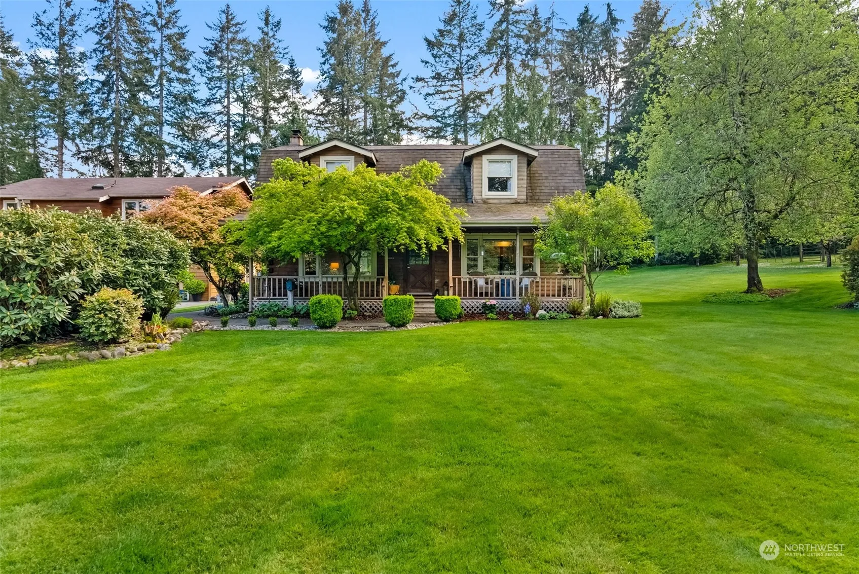 Nestled in the heart of the harbor, this adorable 2.5-acre property embodies the charm of a classic Hallmark movie setting. Tucked away on a dead end street, this one owner home was built with spruce siding & logs, Italian stone flooring throughout the laundry room, kitchen, entryway, and bathrooms. Wood wrapped windows fill the cozy cabin with summer light. Sit on one of your covered porches & enjoy your property adorned with 40-year-old WA Apple trees, offering bountiful year round fruit, alongside old-growth blueberry bushes, raspberries, & a fully fenced garden & sport court. The main home is 1447 sq ft, & the 972 sq/ft ADU. Bring your horses or host events. RV parking & shop. Only 5 min to downtown, hospital, freeway & great schools.