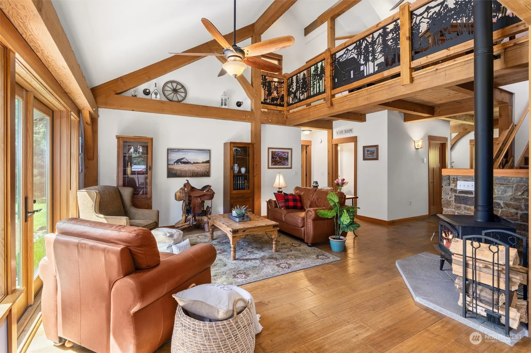 Nestled on 5 acres of serene countryside, this enchanting estate offers a harmonious blend of rustic charm and modern luxury. With a master suite on the main floor, a cozy fireplace, and a shed for peaceful retreats, this meticulously maintained home provides a sanctuary of comfort. Additionally, this property provides beautifully updated one-bedroom ADU and an additional detached dwelling that could be finished for a second rental or generational living. This property offers multiple living options. Located on a quiet dead-end road this property combines tranquility with convenient access to amenities.