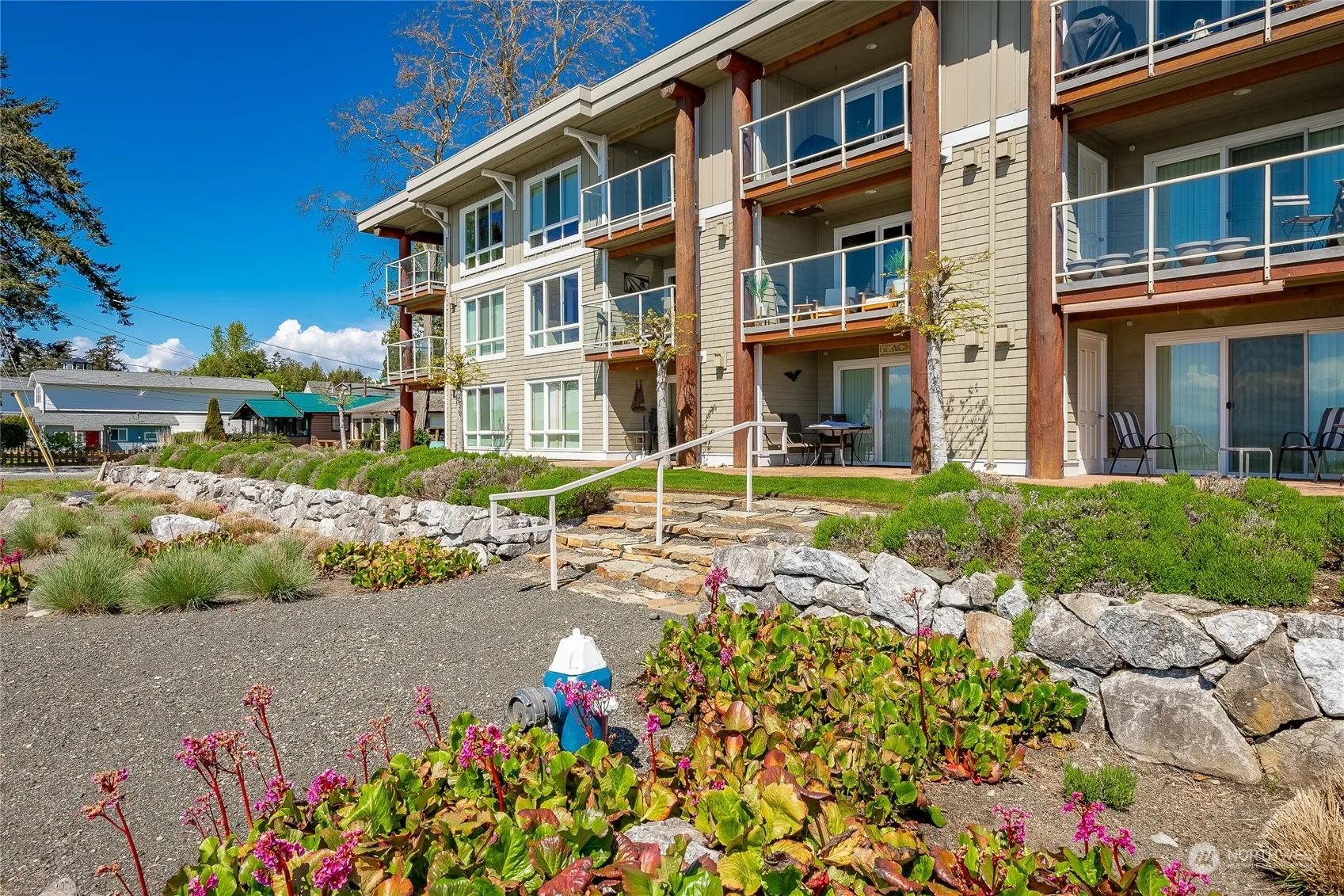 Top corner OCEANFRONT condo at the highly desirable Sands Condominiums in Birch Bay! Easy open floorplan with laminate flooring includes comfy den PLUS oceanfront living room with cozy gas fireplace. Your private deck includes a storage closet & has room for dining or lounge chairs for relaxing, enjoying the sunset & just taking it all in! Kitchen includes all stainless appliances plus more beach views from the side window. Spacious primary bedroom also boasts a STUNNING view, double closets & an ensuite bathroom. Guest bedroom & bathroom, plus in-unit washer & dryer complete everything you need for a getaway vacation spot or full-time living. Enjoy the walking trail, crabbing, clamming, boating and all the best Birch Bay has to offer!