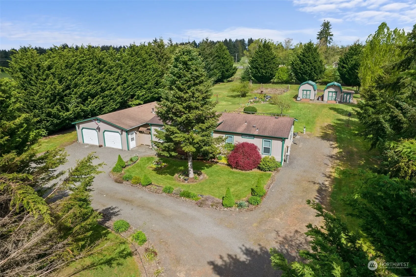 There is a lot of value here. 1.25 acres with a 3-bedroom, two-bathroom home with a 28’ x 40’ garage and 2 additional storage buildings. The home has a one-year-old heat-pump system, stainless appliances, and huge back deck and shows the benefits of good maintenance. Washer and dryer included. The oversized garage is insulated, has a wood stove, a ducted electric furnace, and a ½ bath. Circular drive, well landscaped, and plenty of room for an RV. Come look today.