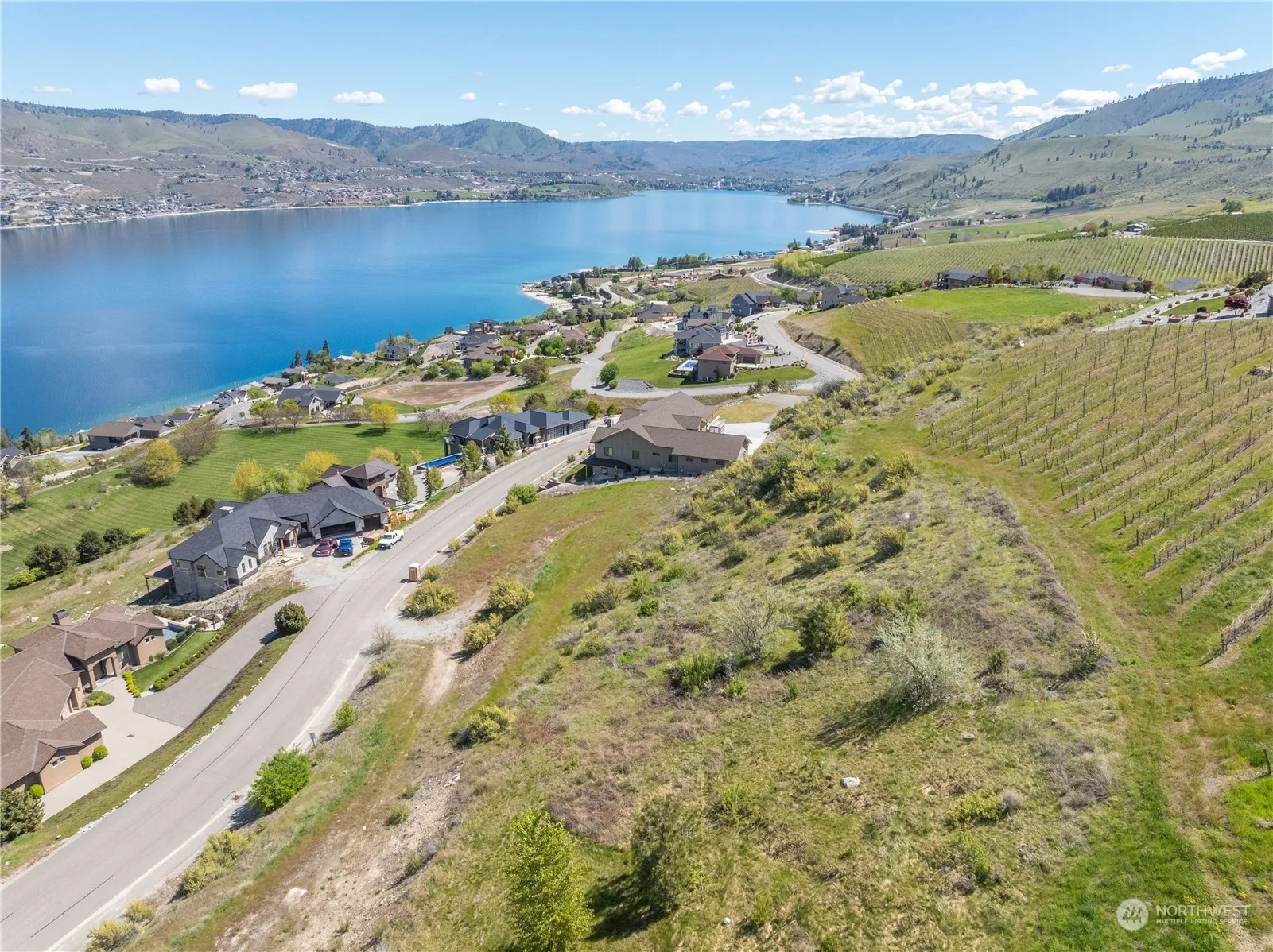 Take in 180 degree Lake Chelan views from lot 50 at Clos Chevalle, one of the most sought after communities in the Valley. This large .56 acre parcel is located near the end of Clos Chevalle Rd, making for easy access and a level of seclusion and privacy not experienced by most of the neighborhood. The lot is terraced, ideal for a lower-entry home design with living spaces on the upper floors to maximize the panoramic views. Power, fiber internet, as well as domestic and irrigation water are in the road. Clos Chevalle owners enjoy gated access, an extensive community trail system and park, as well as close proximity to a number of the areas top attractions. Wine tasting, dining opportunities, golf, all that and more just minutes away.