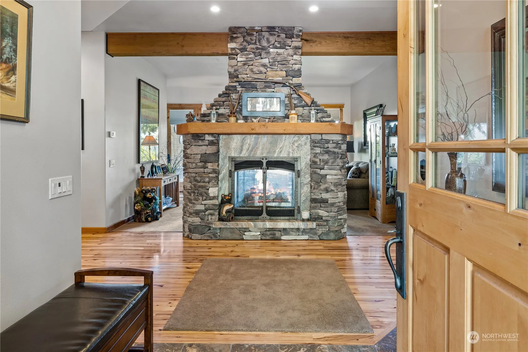 Nestled on the bluff of Sun Country Golf Course, this 3-bedroom, 4-bath home offers panoramic views of Peoh Point and the surrounding valley. With its level entry, you’re greeted by 10-ft ceilings, 8-ft doors, wide hallways, and elegant hickory floors leading you through the spacious layout. The gourmet kitchen features knotty Alder cabinets, granite countertops, and a large pantry, perfect for culinary enthusiasts. Pamper yourself in the primary suite with a curb-less shower and heated tile floors. Enjoy cozy evenings by one of the three fireplaces. Large living room with a wet bar. Relax under the covered patio with a fireplace and masonry walls that provide both privacy and security. 3 car garage and easy access to I-90.