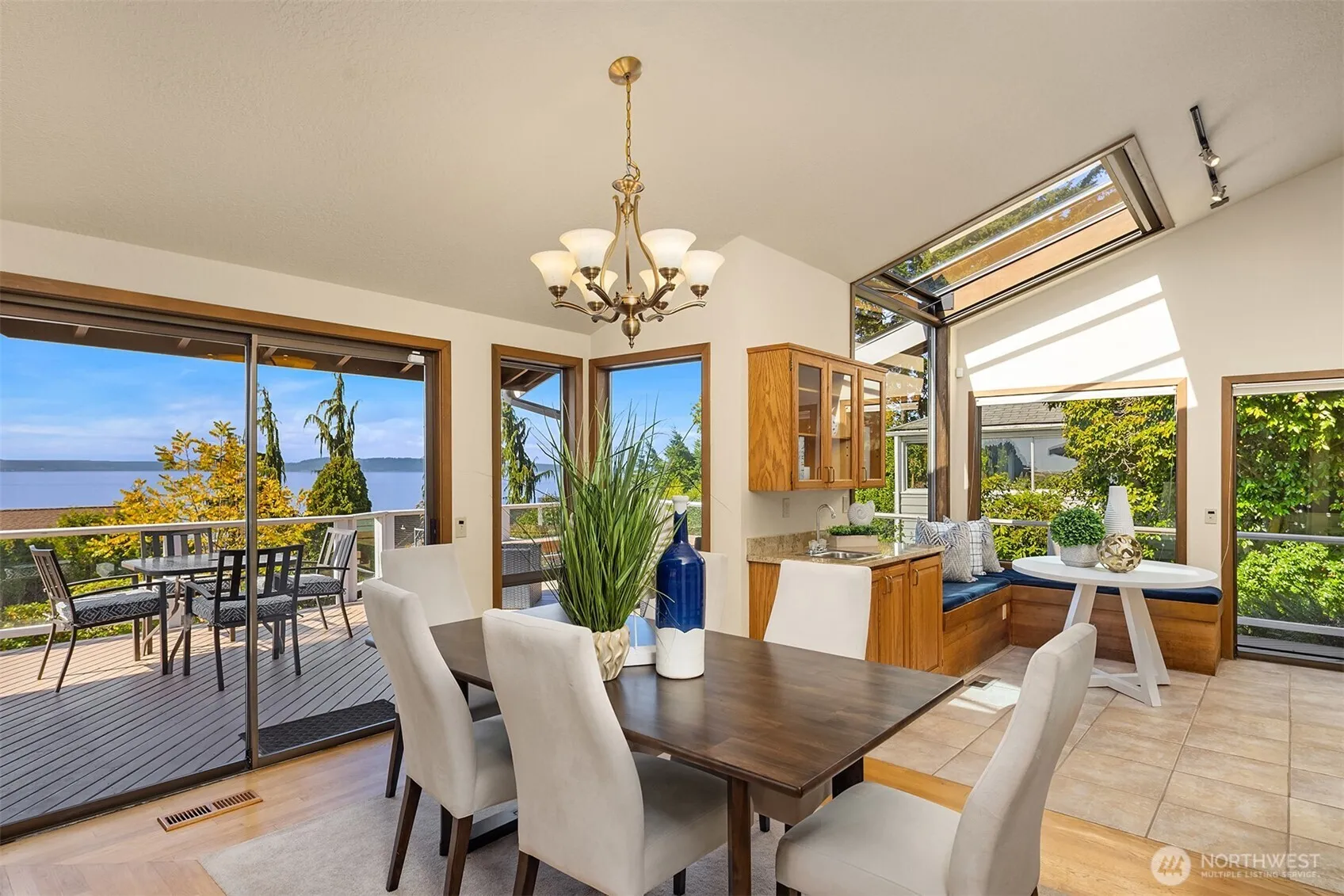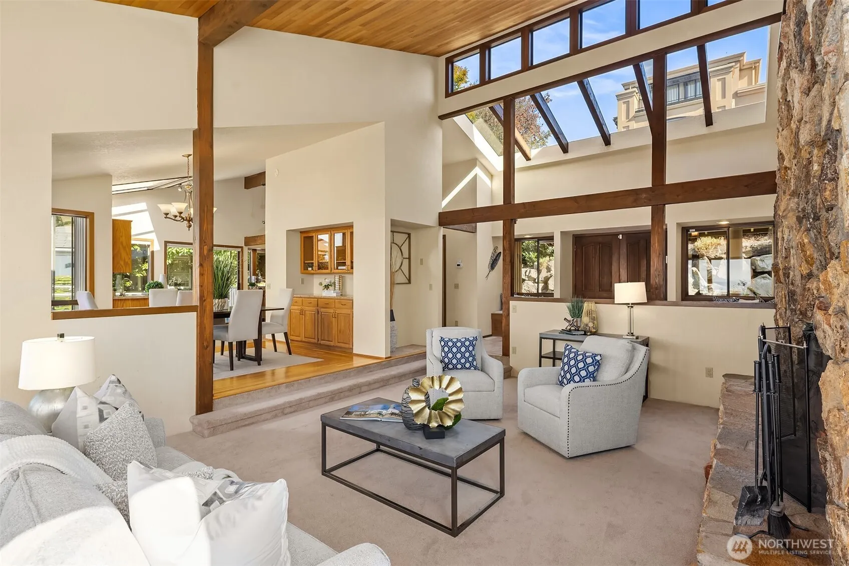 Panoramic Sound and mountain views take center stage in this smartly designed Richmond Beach home. Walls of west-facing windows and expansive decks capture stunning sunsets from nearly every room. The light-filled main level features vaulted ceilings, skylights, and clerestory windows, plus an open, spacious layout positioned to take in the views and a convenient bedroom wing. Retreat to the upper-level primary suite with private deck, spa-like bath, and professionally outfitted closet. The bright lower level offers a large family room, bedroom, bath, and private access—ideal for guests or multigenerational living. The quiet, unbeatable location is minutes away from amenities, including the Richmond Beach Saltwater Park. Pre-inspected.