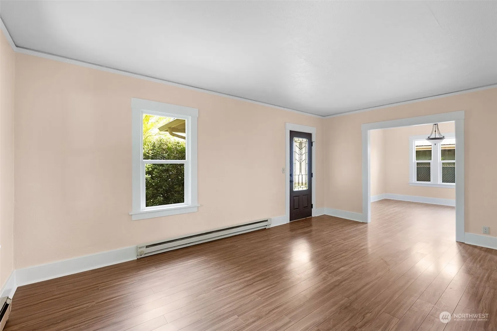 Adorable-Well Maintained home with some old world trim and hardware still in tact. New Upgraded Laminate flooring throughout, Updated bathroom with corner shower, fresh paint and updated fixtures. Updated electrical & vinyl windows – The big stuff has been completed. Indoor Laundry room with washer/dryer included. Stove, Fridge & Dishwasher also stay. Living Room, Dining Room, Kitchen and 2 bedrooms make this a great find. Home is fresh and clean and move in ready. Large corner lot with fenced back yard and alley access to the covered carport.