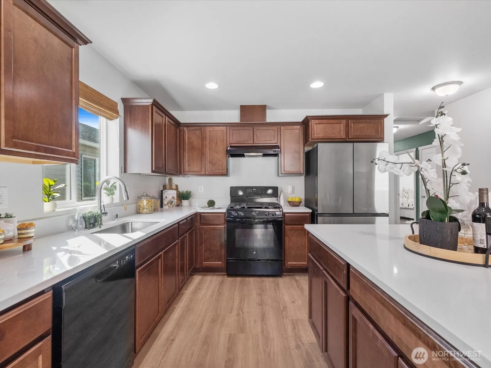 Beautifully designed 2023 home offering 5 bedrooms and 3 full baths with thoughtful design and modern style throughout! The spacious kitchen features brand new quartz counters, pantry, and a large island that opens to bright living and dining areas—perfect for entertaining! A slider off the kitchen leads to the fully fenced backyard, ideal for BBQs and outdoor relaxation. The luxurious primary suite includes a private bath and generous walk-in closet. Downstairs offers great flexibility with a full bath, living area, and two bedrooms—perfect for guests or multi-generational living. Convenient upstairs laundry, central air conditioning, oversized garage, and a great location close to amenities complete this beautiful home!