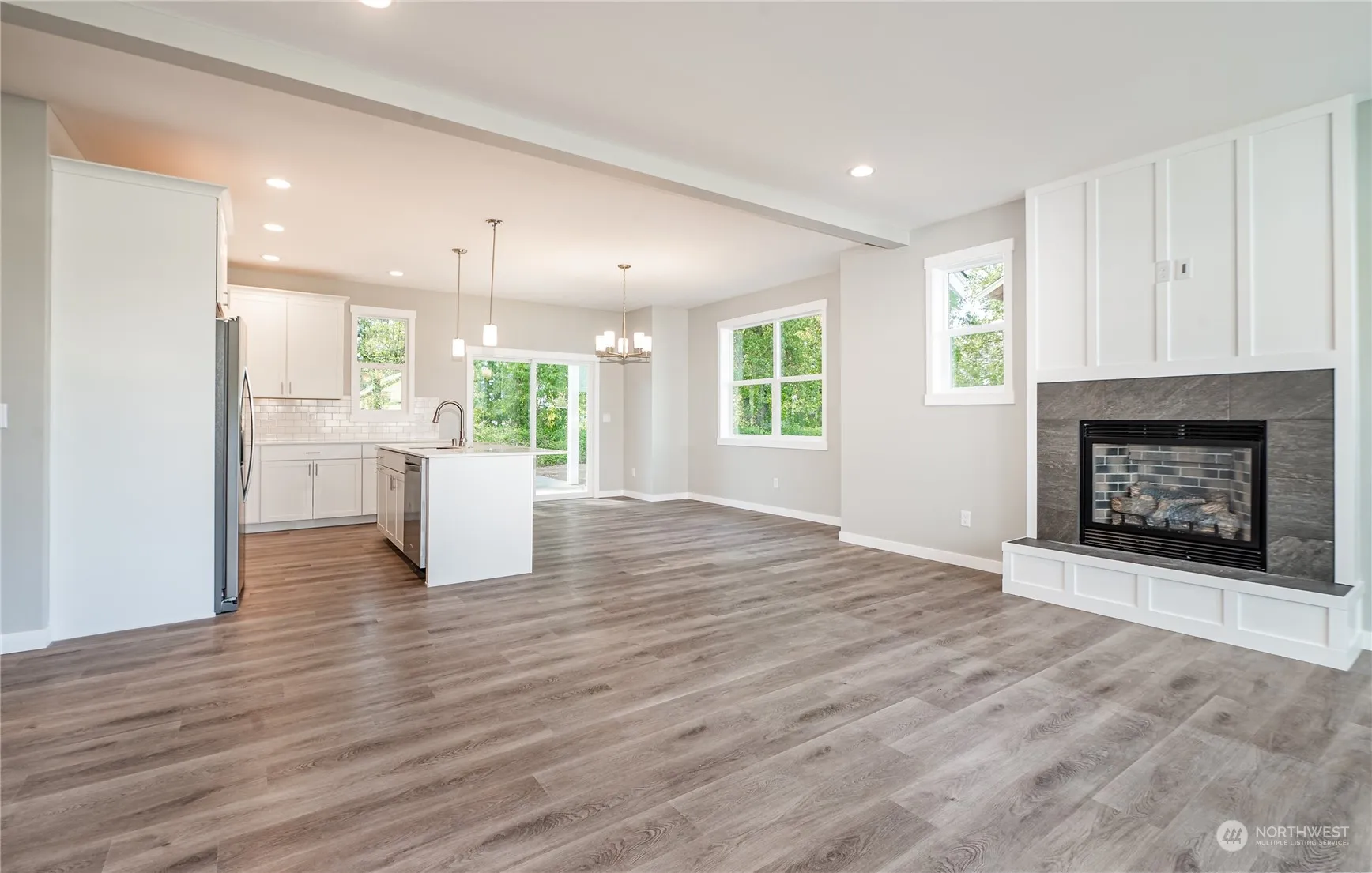 Welcome to Whispering Meadows. Immaculate new construction home in one of the newest developments in Nooksack. This 4 bed 2.25 bath has it all. Open living with lots of natural light & a cozy fireplace creates a warm & inviting atmosphere. Kitchen features quartz counters, brushed nickel hardware, & SS appliances which offers a modern & stylish space. The main floor master bedroom features vaulted ceilings, huge walk-in closet, & a double vanity in the ensuite bath. Remaining 3 bedrooms upstairs & one of them could be easily used as a bonus room. Ductless mini splits to keep you cool in the summer & warm in the winter. Lets not forget about the deck & private backyard, perfect for enjoying outdoor activities. House is not in the flood zone!
