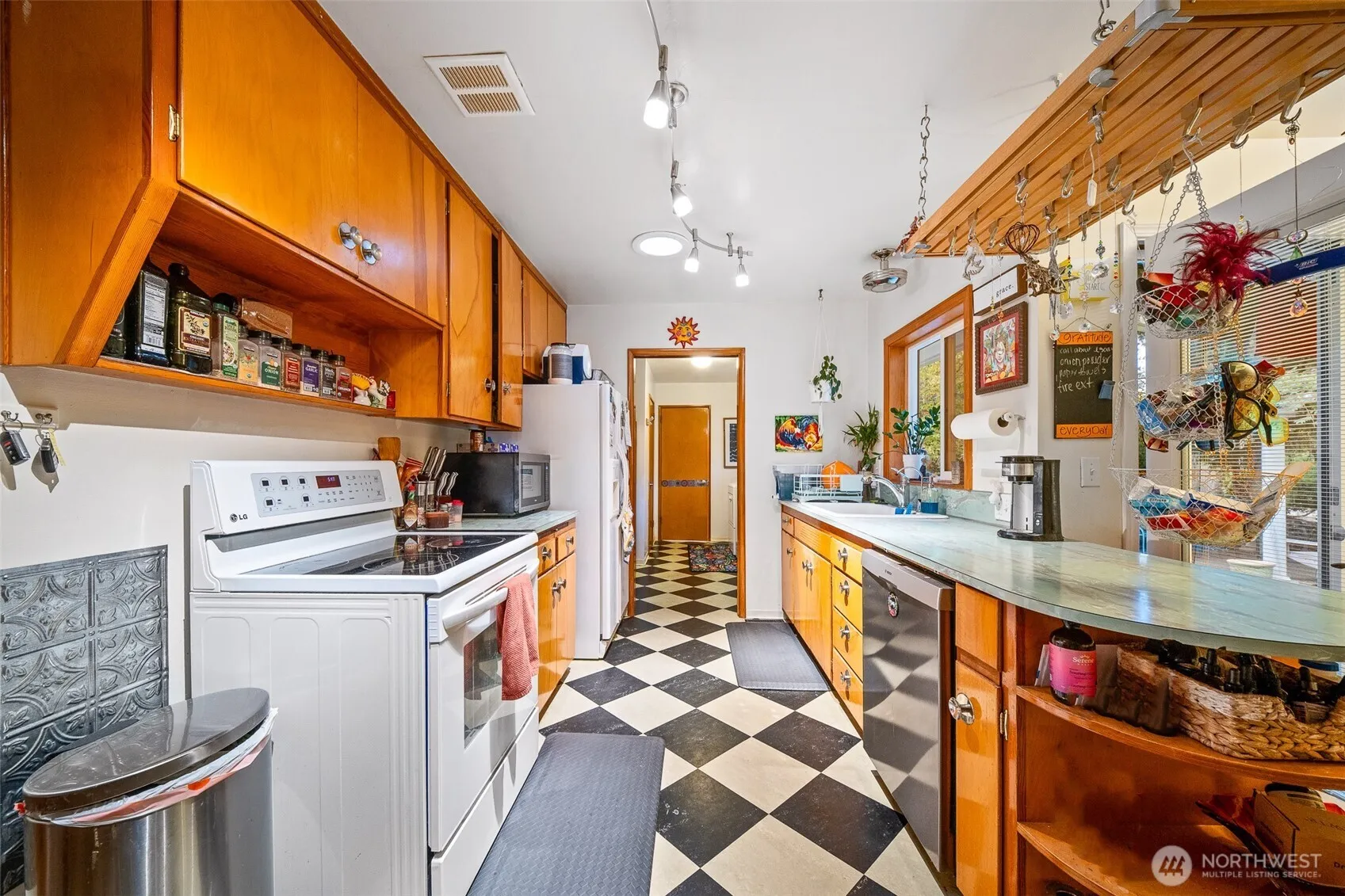 Mid-Century Modern Rambler! Nestled on an estate-sized, manicured lot with a wide variety of plants, something is always blooming. No HOA in this lovely well established neighborhood, this beautifully updated home blends timeless style with modern comfort. Upgraded items include a newer roof and gutters with guards, Milgard windows, furnace, heat pump, white trim and baseboards. The light-filled kitchen features hardwood floors, solar tubes, cozy eating area, and French doors to the private, fully fenced backyard with shed. Enjoy a spacious living room with coved ceiling and brick fireplace, large bedrooms, and a versatile flex space. Conveniently located near Gravelly Lake, Lakewood Town Center, JBLM and freeway.