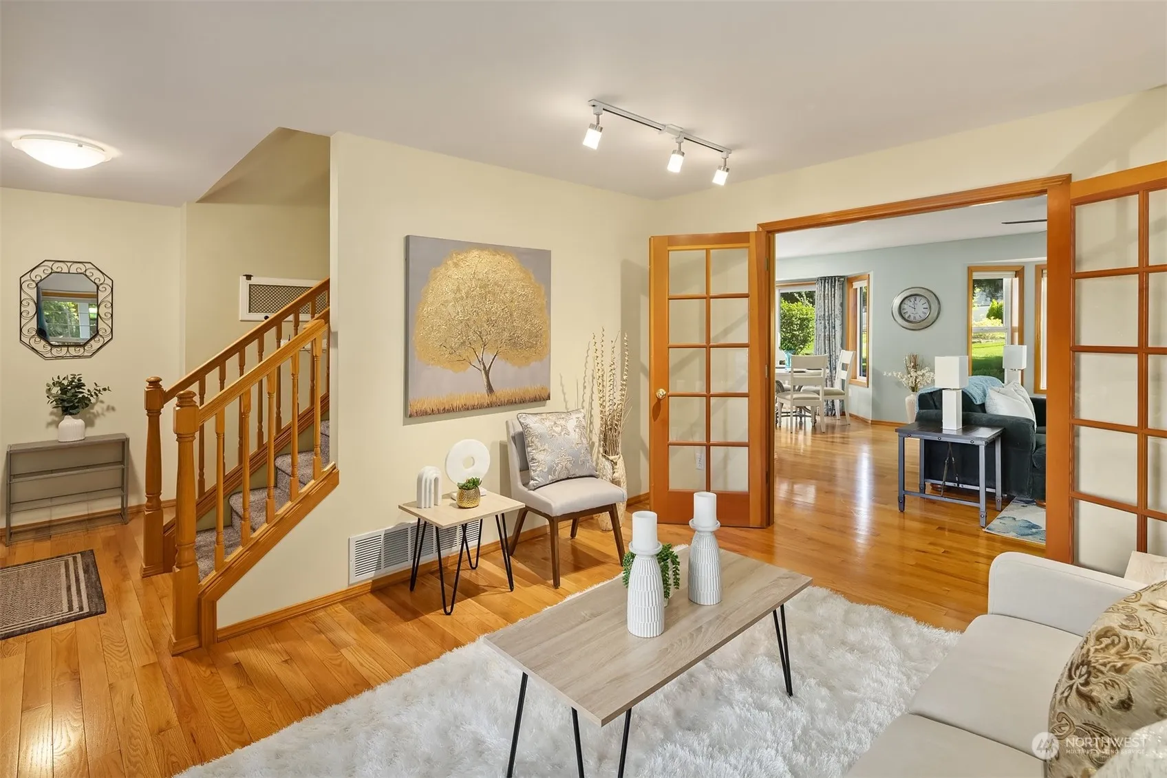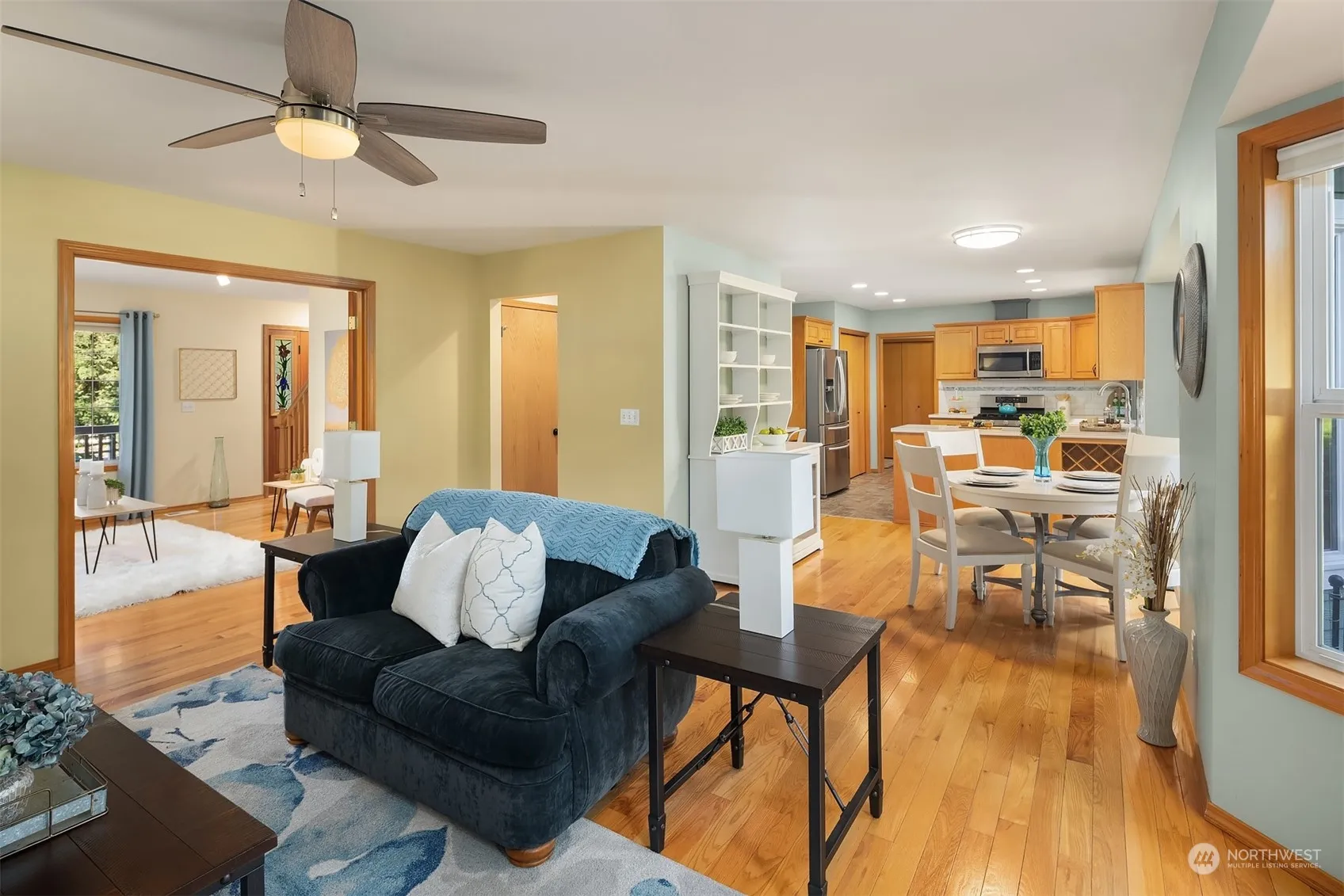 This 3 Bedroom + Bonus Room + Main floor office/den 2,413 sq ft home is beautifully situated on 1.25 Acre surrounded by meticulous landscape and gardener’s delight w/6 fruit trees, flowers and fenced backyard. Quality-built custom home w/wrap around front porch. 3 Pantries and new backsplash in kitchen with large adjoining utility room. 2 Car attached garage + 2 Car detached shop, both w/attic storage, are perfect for the mechanic or hobbyist. Storage shed has roll up door and ramp + storage loft. Finished studio/greenhouse at property front w/raised bed garden bordered by white fencing and shrubs. Entertaining outdoor living w/large partial covered patio and fire pit. Quieter neighborhood on dead-end street that’s close to shopping!