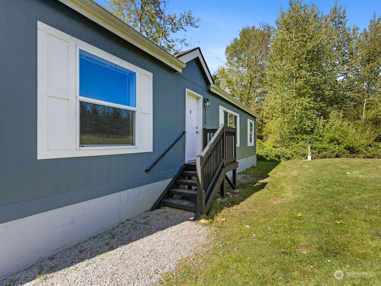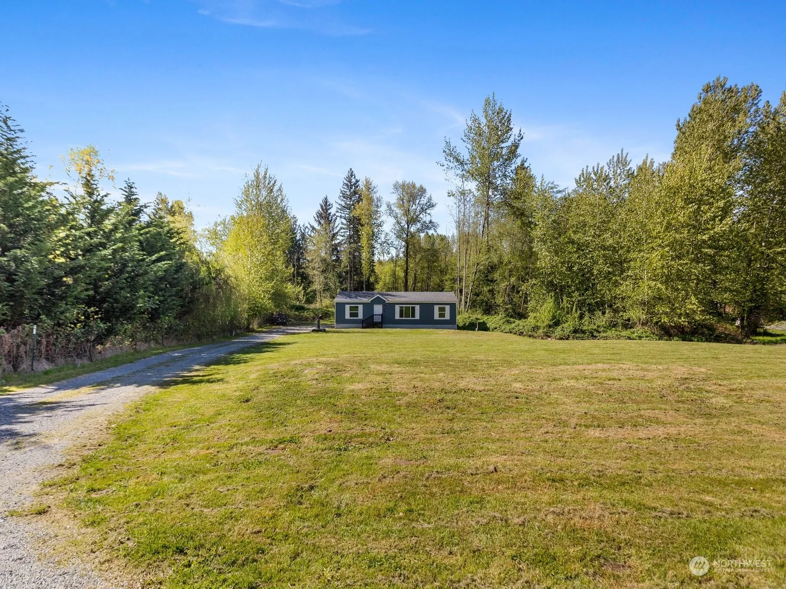 Beautiful and well maintained 2019 manufactured home, situated on 2 acre lot. Open living area, kitchen has island w/plenty of cabinet and counter space. Large primary bedroom w/walk-in closet and over sized 3/4 bath. 2nd full bathroom and 2 more spacious bedrooms. Laundry area off the kitchen. Long driveway with plenty of parking, w/outside storge building. Lot is large enough to offer plenty of potential plans. RV parking with the home located close to I5, Bryant and Stanwood on dead end Street. A piece of open space to enjoy “must see home”.