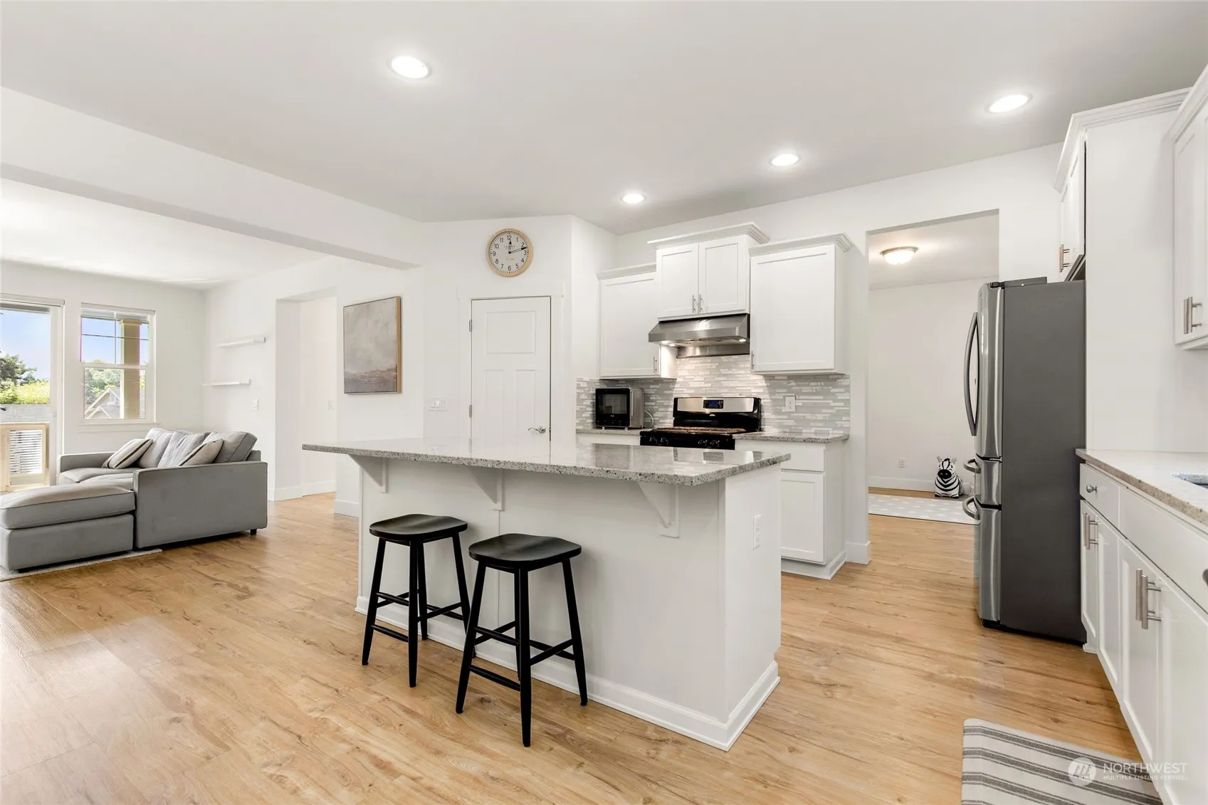 This home has so much amazing space, you’re going to love it! Nestled in the Timberwood Ridge community, the light & bright, updated and freshly painted interior features a remodeled kitchen w/quartz countertops, huge island, tile backsplash, modern fixtures & stainless appliances. High ceilings & luxury vinyl plank flooring provide a phenomenal sense of openness & space. Main floor living room w/fireplace & sliders to covered deck w/territorial views, plus a den/office & dining/family/flex room. Upstairs you’ll find an office nook, new carpeting, & an enormous primary suite w/walk-in closet, ensuite bath, & extra en-suite room for reading, office, closet, or nursery. 3-car garage, private patio, all appliances included… Its all here!