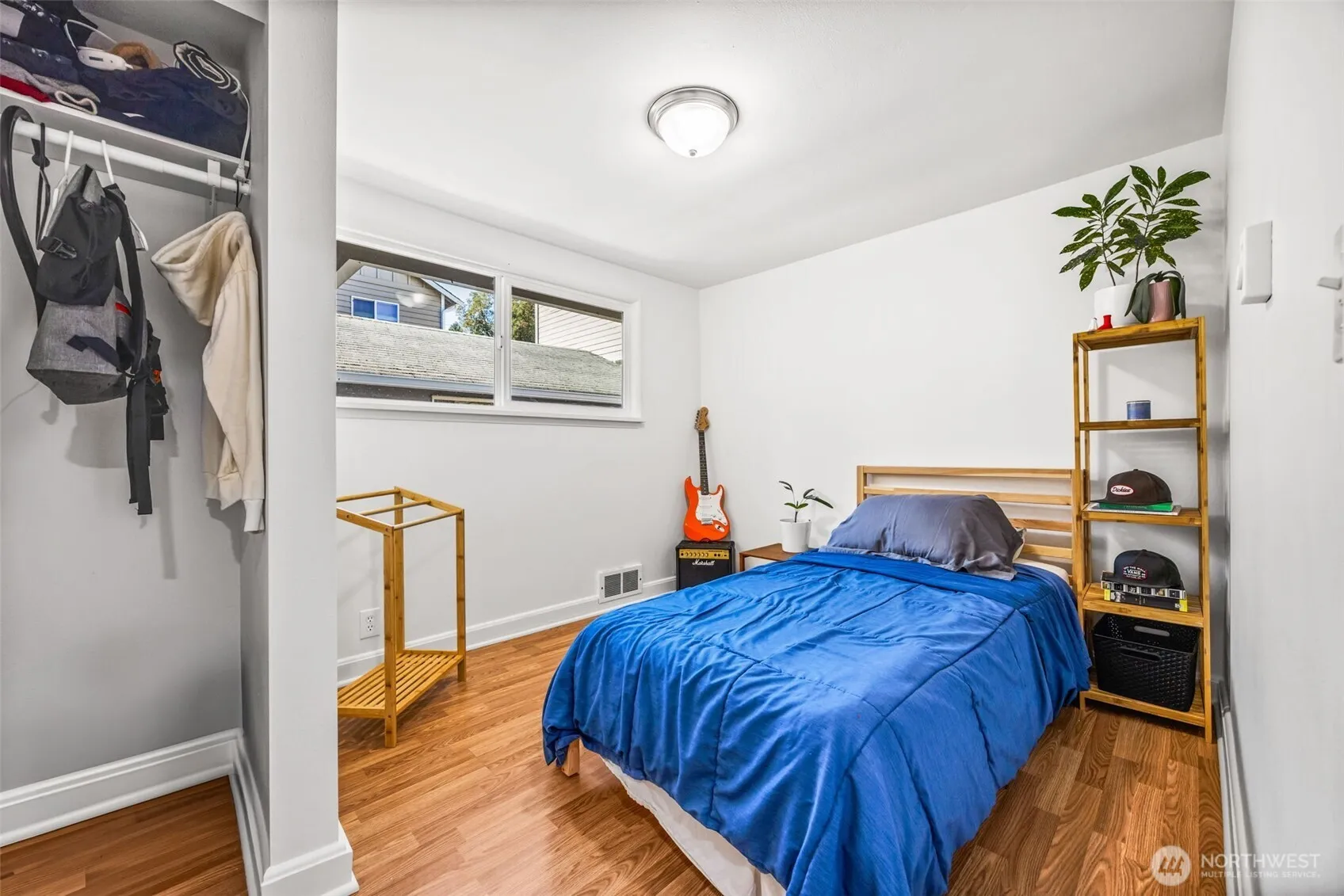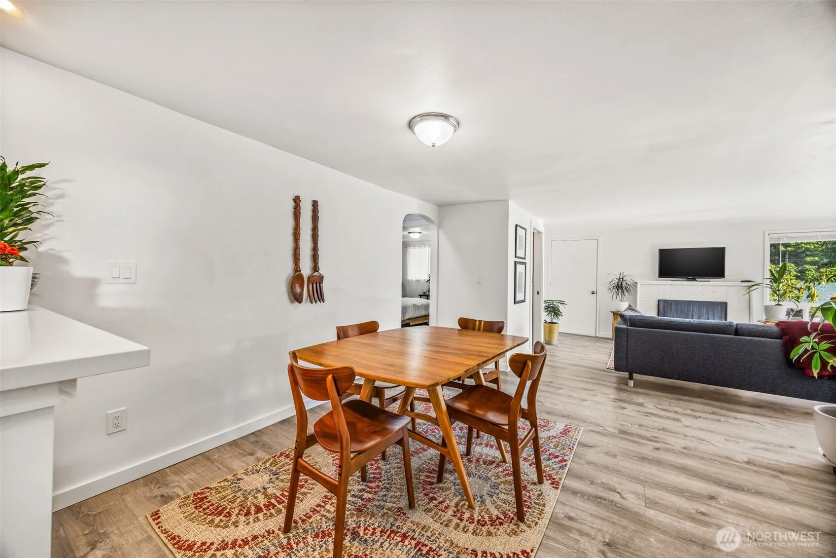 Updated single level home in desirable Ridgecrest neighborhood of Shoreline. Spacious layout connects 3 bedrooms & 1.5 bathrooms inside 900 sqft. Cozy up for fall in the bright living room with picture windows and wood-burning fireplace. Entertain in the open dining space adjacent to renovated kitchen with quartz counters and stainless steel appliances. Exit out back to a detached 2 car garage with workbench and EV charger. Enjoy the private patio that extends to the expansive garden space, landscaped with love. Located about one mile between two Shoreline Light Rail Stations at 185th St & 148th St. Explore all the convenient amenities nearby including the library and several great local parks. Beautifully refreshed and ready for move in!