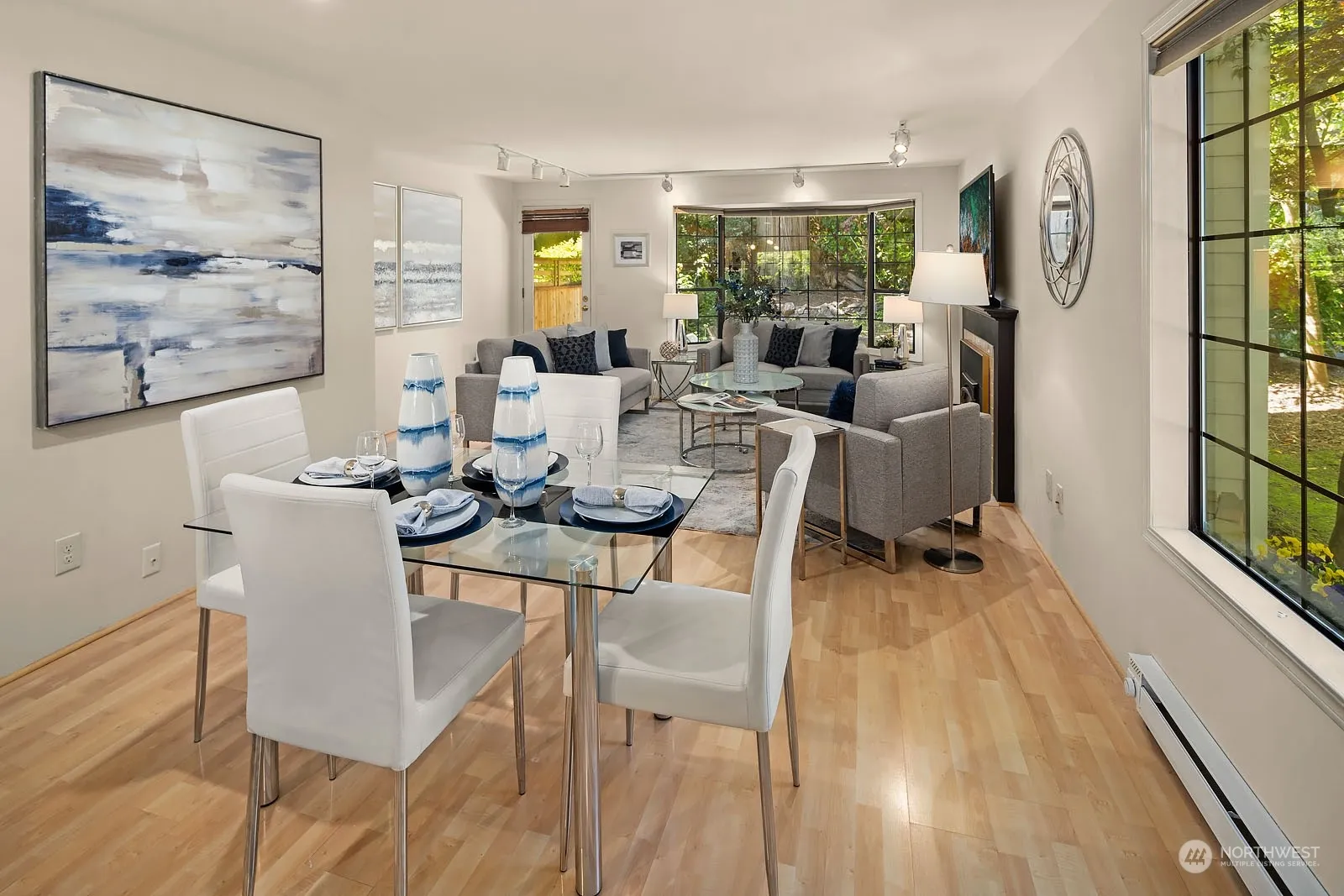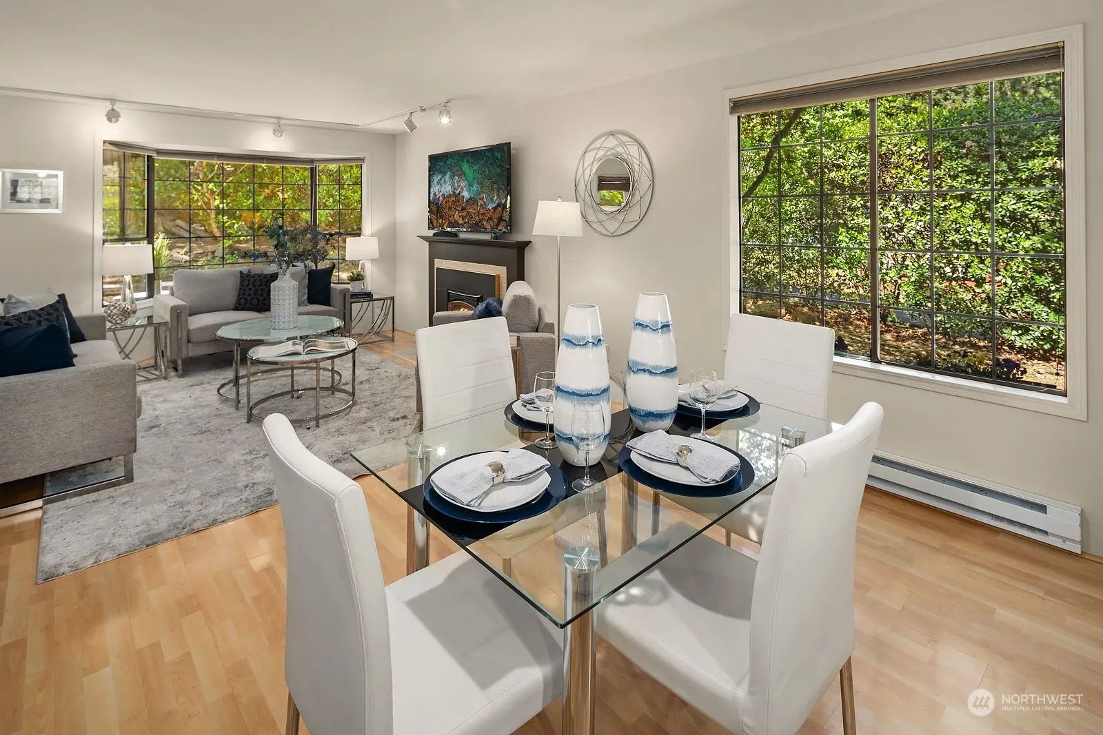 Welcome home to Maplebrook Lane, a highly coveted neighborhood ideally located with convenient access to downtown Kirkland, Bellevue, 520 & 405. Inviting covered front porch. Desirable open concept main floor featuring newer laminate flooring, dining area, & living room with a cozy fireplace, large bay window & access to an exclusive patio. Sunlit kitchen with breakfast bar. Primary bedroom suite with 2 closets & a ¾ bathroom. 2 additional bedrooms & a full bathroom are just down the hall. Resting on a peaceful, natural setting adjacent to a pedestrian trail that leads to the community park. 1-car garage plus additional off-street parking. New roof on townhouse in 2021. New carpet & freshly painted interior. Pet friendly. No rental cap.