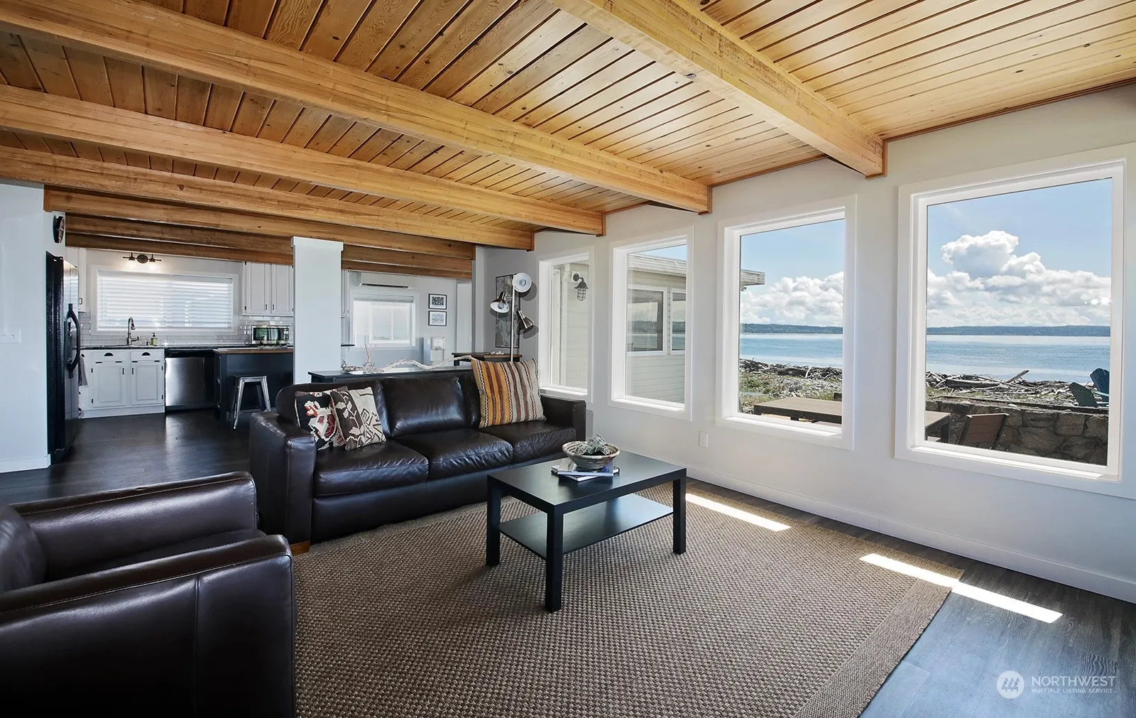 Experience the coastal living at its finest in this renovated Coupeville retreat on Whidbey Scenic Isle Way. Enjoy stunning beachfront w/panoramic vistas of the Olympics, Mt. Rainier, Admiralty Inlet & passing ships. Just a quick stroll to Pt. Townsend Ferry, Ft Casey State park, this 1-level home is perfect for year-round living, or weekend getaways. Recent updates include new luxury plank flooring, contemporary bathrooms, ductless cooling/heating, exposed beams & propane fireplace. The bright, open kitchen boasts SS appliances, new cabinets, & island. Relax on the oceanfront deck w/ fire pit, enjoying 75 feet of private beachfront, perfect for fishing, crabbing & kayaking. 3 car garage & shop for cars/kayaks/bikes. Perfect for AirB&B!
