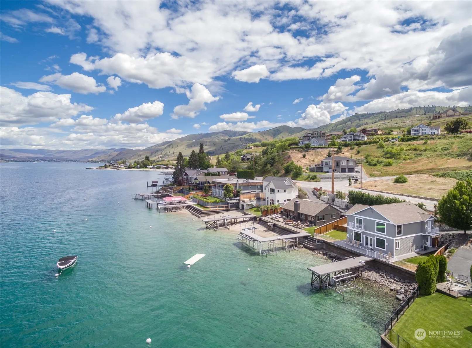 There is nothing better than living the Lake Chelan Life on the water. 75 ft of low-bank bulkhead waterfront on the sought-after Minneapolis Beach. Private dock, boat lift, jet ski lift and buoys. This stunning turn key home comes fully-furnished. Every bedroom offers ensuite bath. Excellent space for entertaining with large great room on main level and french doors to your private outdoor oasis. Enjoy coffee in the morning and wine at night on your private Trex deck. Fully-fenced with sprinkler system & outdoor shower. Attached garage and plenty of off-street parking in driveway. Nothing beats the summer days on the lake and experiencing the award winning wineries and restaurants in town. Welcome to your new home on Beautiful Lake Chelan.