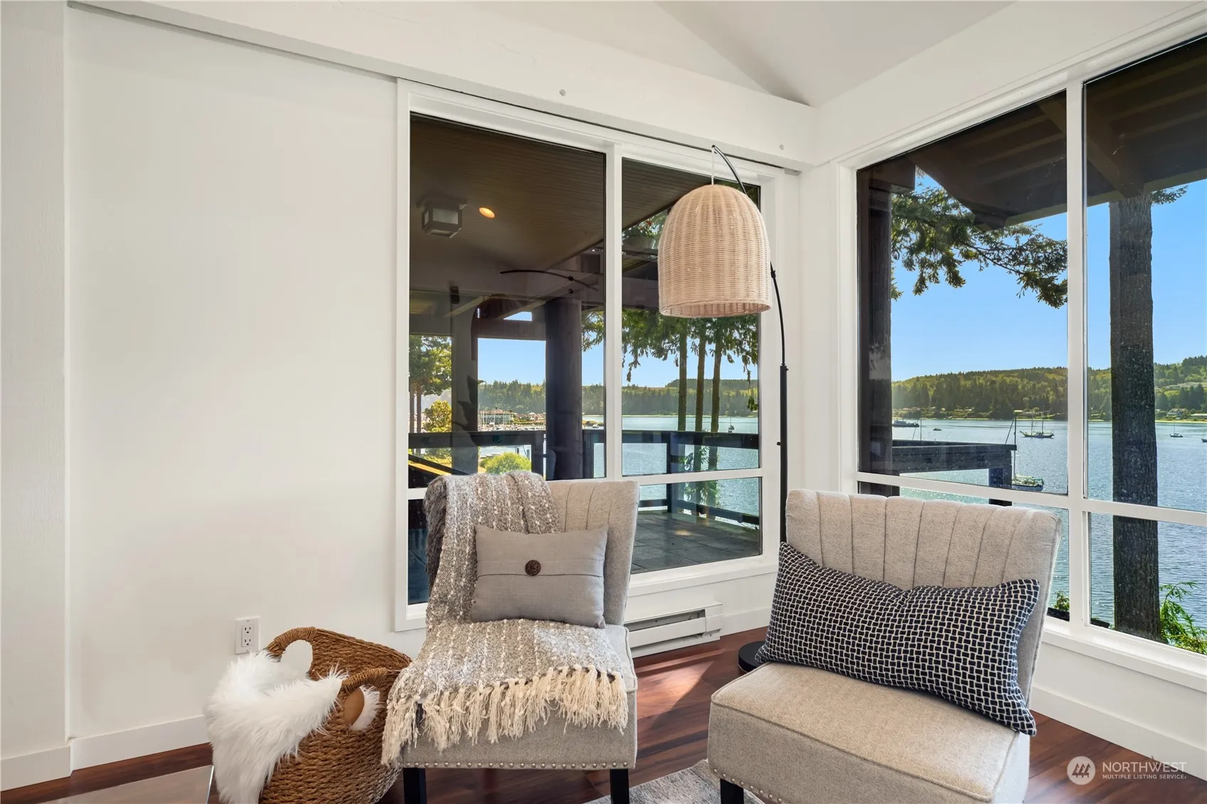 This elegant unit has new paint, all engineered hardwood floors, bathroom sinks and quartz counters, drawer handles,light fixtures.NO stairs, parking in front, and large storage space below. The kitchen has: Dacor ovens & warming drawer, Black Granite counters, Cabinetry w/ recessed lighting & glass doors. The fridge, cooktop and dishwasher complete the beautiful kitchen. Ample storage for all pans, china, and appliances. Den/TV room or 3rd bedroom is located to the left of the foyer. Guest bath has glass shower door and BR #2 down hallway has large closets. Full size W/D in hallway, more storage and Primary BR and Bath feature double sinks, walk in closet, toilet &Tub/Shower have a door for separation from dressing room. Virtually staged.