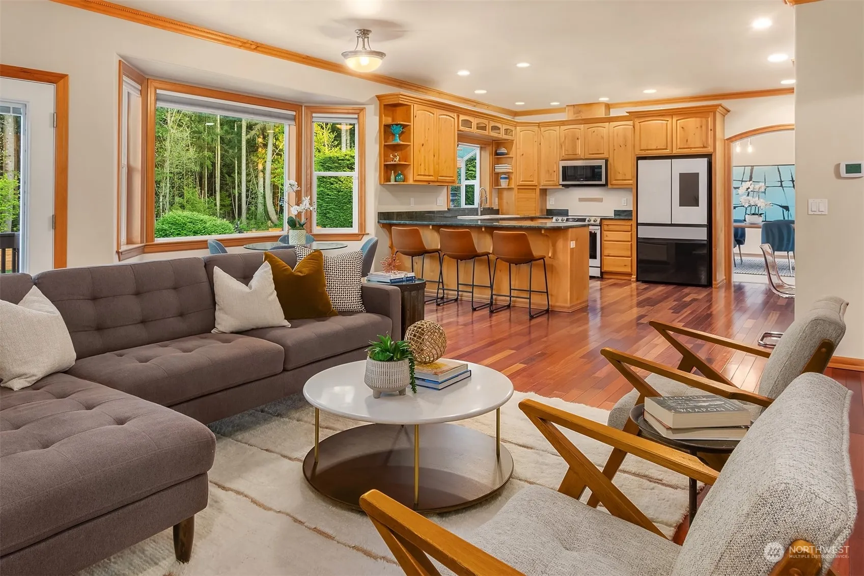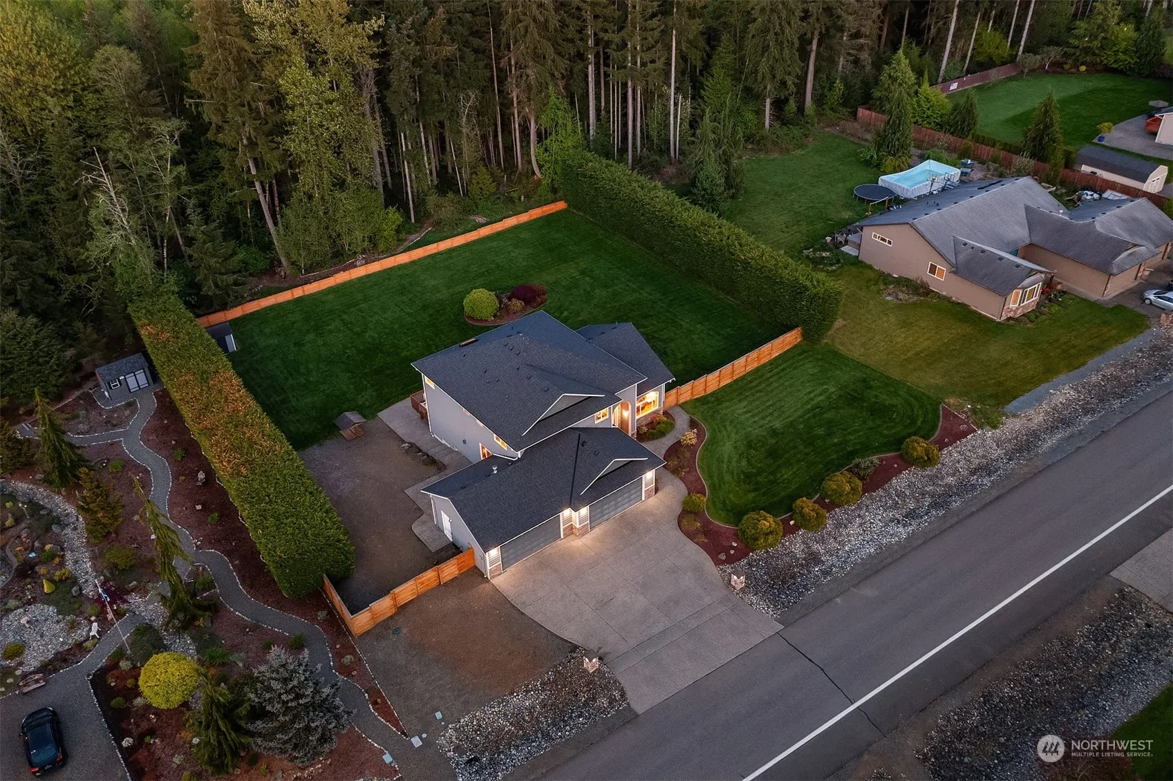 Serene + beautifully landscaped setting plus interior spaces that fill with natural light + boast soaring ceilings. Nestled in coveted Preserves at Lake Cassidy community, this home sits on oversized lot that adjoins forested preserve. Entertainers will appreciate large, open concept living spaces. Stunning kitchen features new smart appliances, granite countertops + custom alder wood cabinets. Fireplace + French doors with backyard access help define great room. Guest suite on main level with 3 bedrooms upstairs. Primary bedroom includes luxury ensuite with soaking tub. New roof/water heater offer peace of mind. 4-car garage with EV charge + room for RV. Explore neighborhood trails + parks.