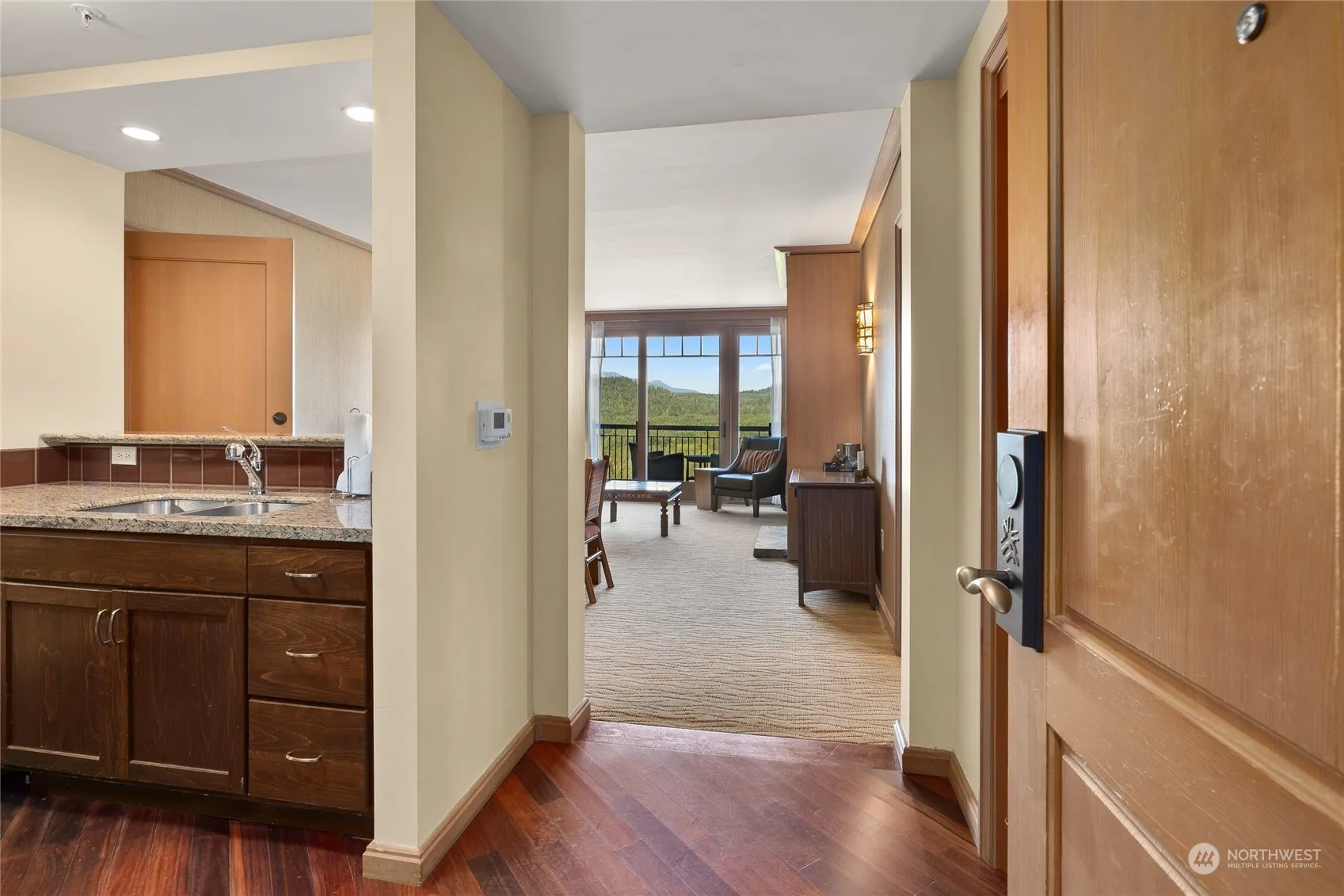 Spectacular 2BR lockoff suite on the River View side of the Suncadia Lodge. Convenient Seclusion with sunset views of the Cascades! Fully furnished and turnkey for your immediate enjoyment. Situated in the heart of Suncadia complete with fully equipped kitchen (or call room service!), spacious primary bedroom and bath, plus the lockoff bedroom with 2 queen beds and full bath. For extra guests there’s also a pullout sofa in the living room. Located on the 4th floor with picture perfect views and flexible lockoff use, you will be able to enjoy your condo home and spacious balcony all year round! This unit is participating in the unit refresh and will remain eligible for the Suncadia/Hyatt rental program – seller to take care of refresh costs!