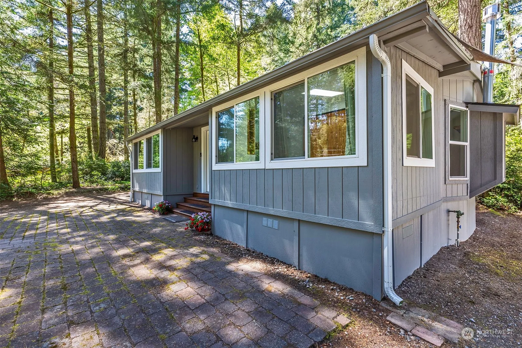 Calling all Minimalists! This is the cutest cottage in the woods– fully remodeled and turn-key ready! It’s better than any tiny home; Sized “just right” for a vacation retreat or living simply. All new everything! Slate tile entry and durable LVP flooring. Beautiful new kitchen and bathrooms. There are clever built-in storage solutions throughout. No space is wasted. On a chilly winter’s day, cozy up to the propane fireplace. Outdoors there’s RV parking and a new terrace with fencing. The large workshop/shed with covered area is great for entertaining or projects year-round. Riviera HOA amenities include access to lakes Flo & Jo, executive 9-hole golf course, tennis courts, parks, trails, playgrounds, and a seasonal marina.