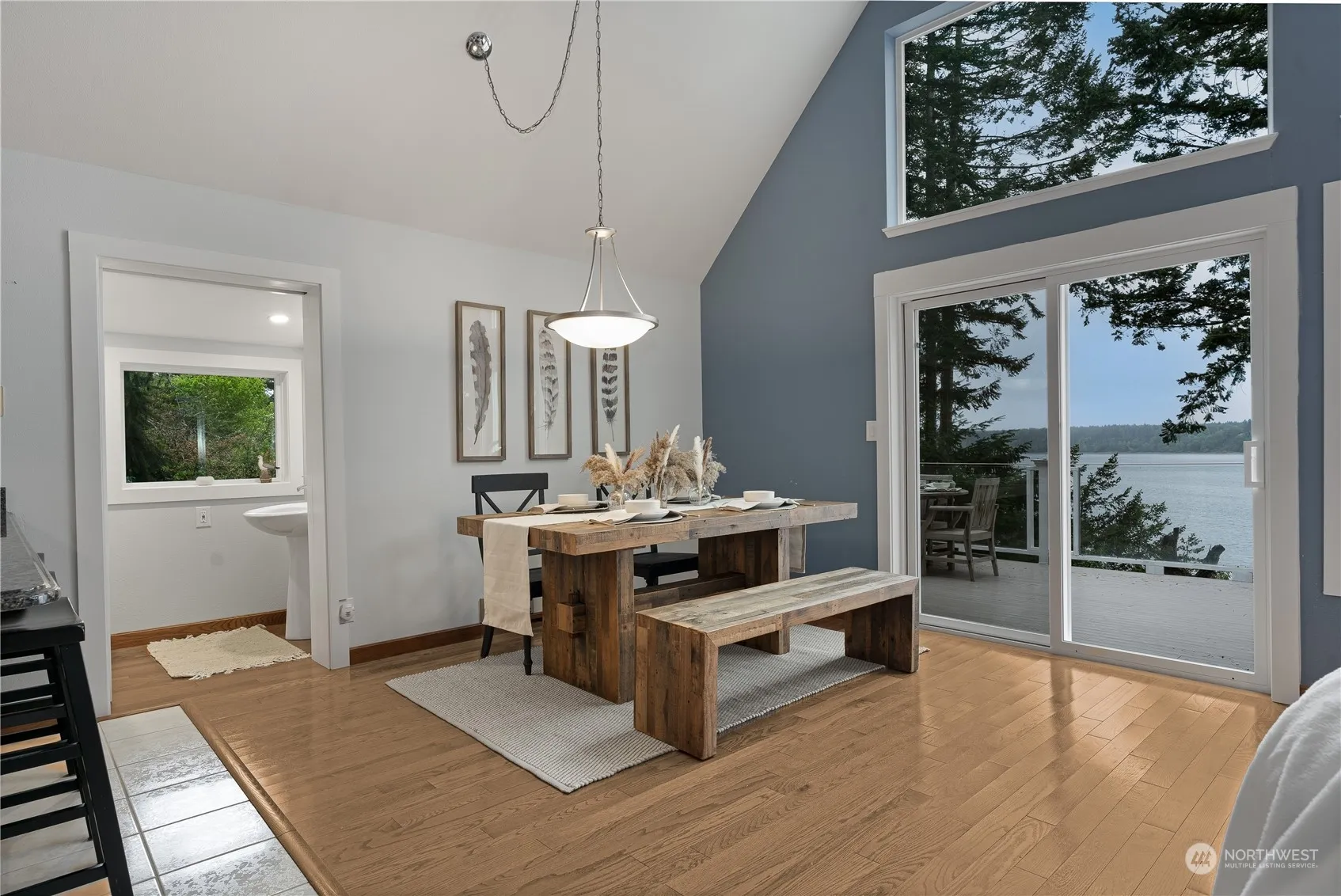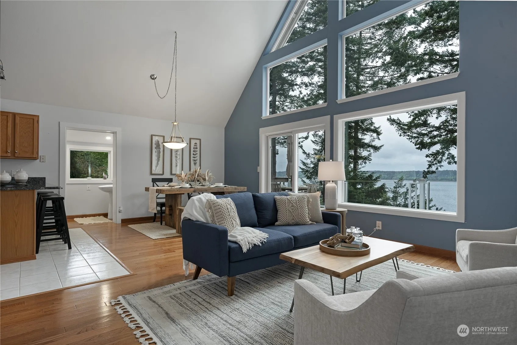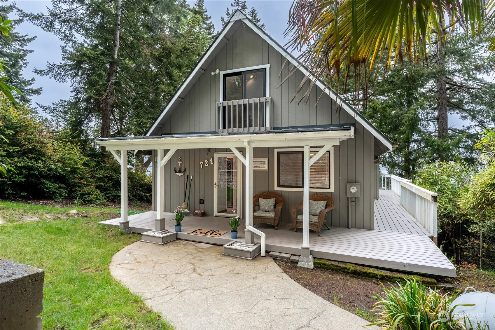 Private island with community ferry! 70′ high bank WATERFRONT, including tidelands, west facing for spectacular water & Olympic Mountain views! Gorgeous fully updated home. Main floor consists of open plan living/dining/kitchen w/vaulted ceiling, wall of (new) windows & slider out to large deck. Large bedroom, full bath with laundry (W & D included) + guest half bath. Upstairs to loft. Down to 2nd bedroom with walk-in cedar lined closet & exterior access to a private covered patio. Covered deck at entry plus walk round to private deck perfect for entertaining & sunset views. Older staircase to beach access requires work. Lots of room for off road paved parking + two 10’x12′ storage sheds with power. Moorage holds 36′ sailboat at low tide.