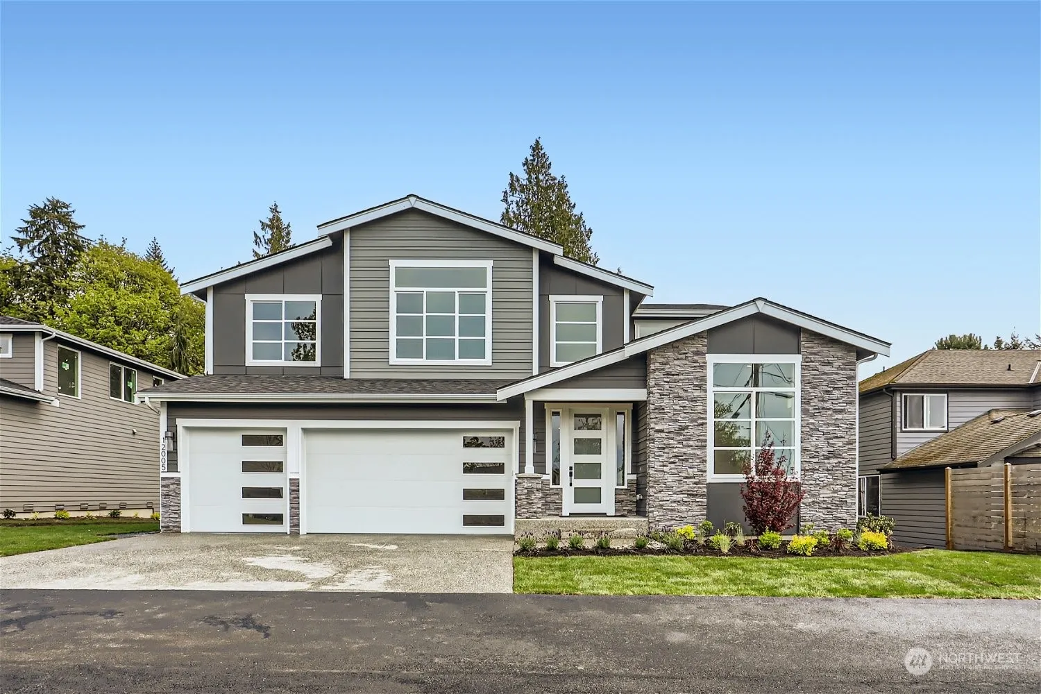 The pinnacle of architecture + design. Lake Stevens NEW CONSTRUCTION by ARCADIA homes, captures LAKE VIEWS while being located on a private 3/4 Acre lot. Modern + Style 5 bed,2 .75 bath + BONUS room will check all your boxes. Built w/ only the BEST – Dreamy Chef Kitchen, massive QUARTZ island, tile backsplash, gas range, WINE fridge, walk in pantry + under counter lighting. Floor to ceiling wrapped windows, wide plank wood floors, 9′ ceilings, metal railings, shiplap + built in storage. MAIN FLOOR BED + 3/4 Bath makes this floorplan ideal for all. BONUS ROOM/LOFT area, 4 additional BEDS + Laundry. LUXURY Primary Suite, DOUBLE sinks, Free Standing SOAKER TUB, tile shower + Walk in closet. 3 car fully finished garage + Heat pump & A/C!