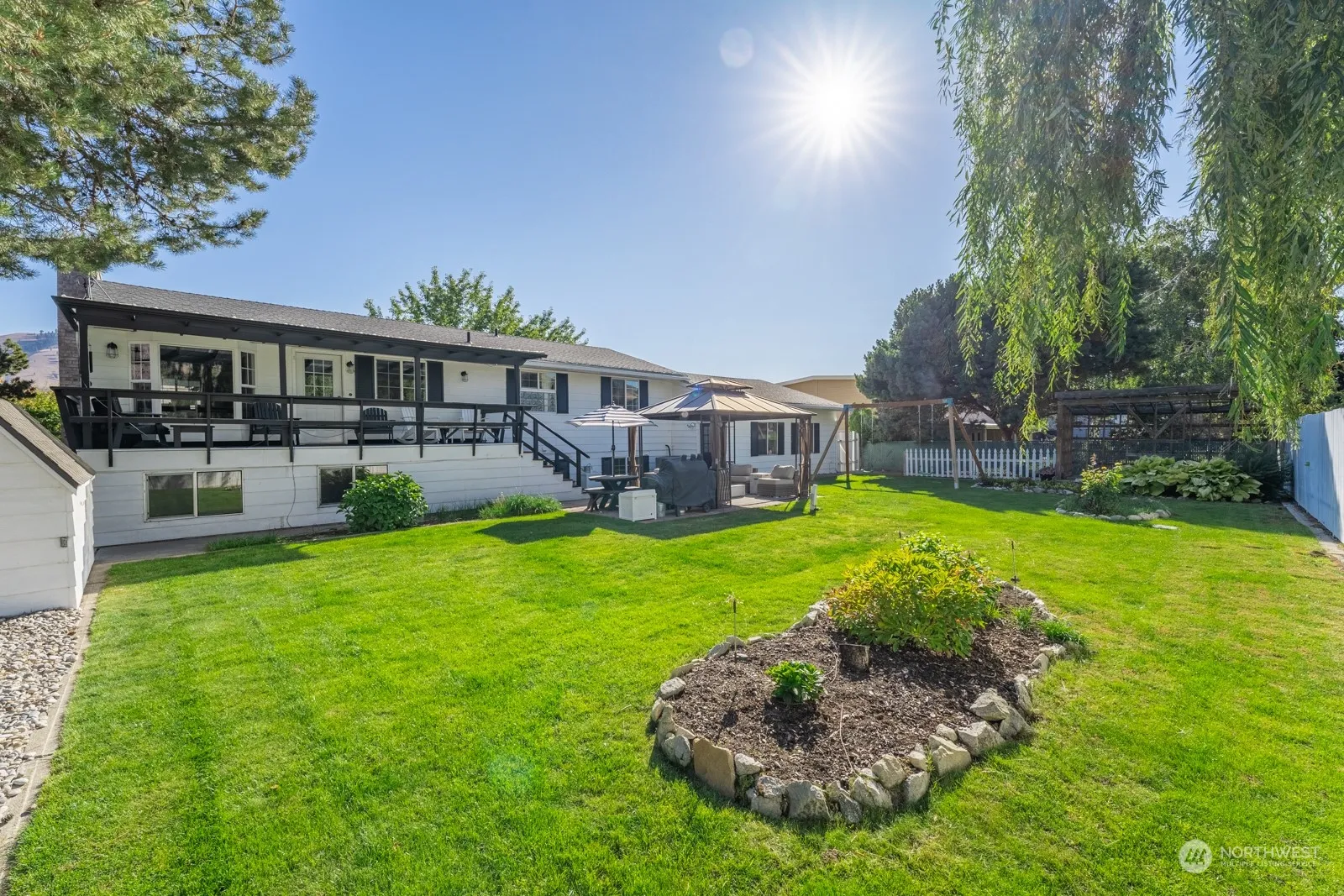 This split-level retreat offers 2 bedrooms, 2 baths, and a wood-burning fireplace on the main floor. The lower level features a spacious family room, kitchenette, dining area, 2 more bedrooms, a full bath, and a rec room. Enjoy stunning mountain and golf course views from ample windows throughout. Outside, mature landscaping provides privacy, while a hot tub room, gazebo, and deck offer relaxation and entertainment. Don’t miss out on this serene oasis! This home suits well for everyone from your first home to multigenerational living. This home lends itself well for multigenerational living. Great outdoor living space and easy access to the golf course. Could possibly be converted into two separate long-term rental units relatively easily.