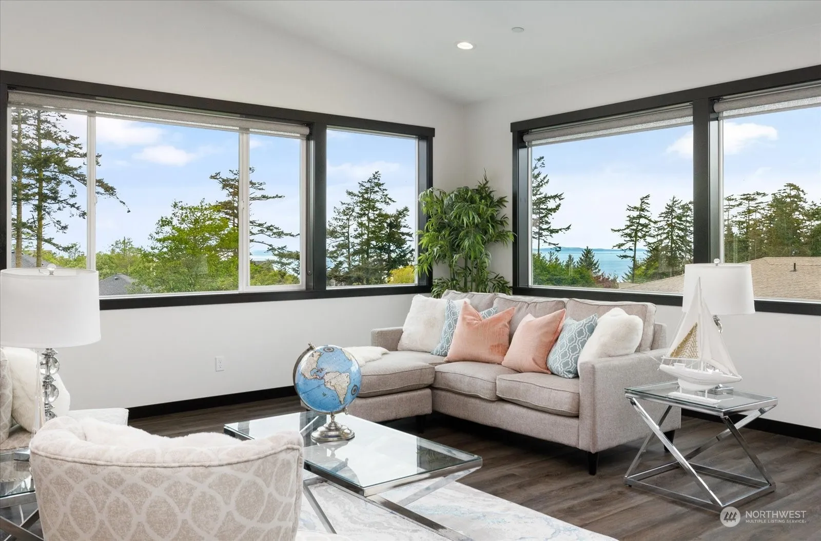 Every day to dusk West Views would never be tired from this new-looked 3 bed+1 bonus room/2.5 bath home(2018) near West beaches. A bright master bedroom w/big ensuite bathroom and walk-in closet. Easily breathe in the open living, dining, & beautiful kitchen area with a high vaulted ceiling. Large island/walk-in pantry, new luxury SS kitchen appliances of GE Cafe series. The luxury vinyl plank floors, quartz countertops, huge laundry room with cabinets, mini split heat&A/C system plus wall-mounted radiant/convection heaters, energy-saving hybrid water heater, and oversized two-car garage sustain modern life. A quiet and friendly Hingston Community plus a private road w/ fenced yard. 10-minute drive to Downtown Oah Harbor.