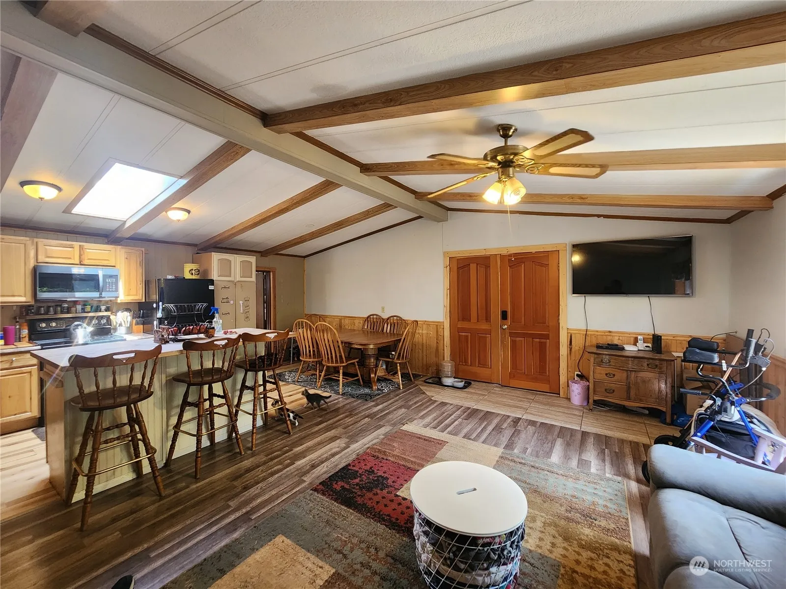 Located in desirable Sunny Shores neighborhood, this 3-bedroom, 2-bathroom home has an addition that allows its maximum useage as a 5 bedroom, striking the ideal balance between comfort and functionality. As you enter through the solid oak French doors, you are greeted by a spacious living room bathed in natural light, perfect for relaxing with your loved ones or entertaining guests. The adjoining kitchen is a chef’s delight, boasting modern appliances and ample counter space that make meal preparation a breeze. The backyard offers a private, fully fenced retreat, pefect for summer-time bbqs while providing a worry-free environment for pets. For outdoor recreation, this home is just 1/4 mile from the community beach and clubhouse.