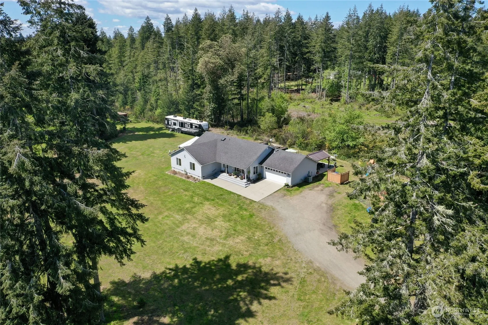 Welcome to your idyllic retreat! Nestled on 5 acres of lush, flat land in North Mason, this charming 4-bedroom, 2-bathroom rambler offers the perfect blend of tranquility and convenience. For those with a green thumb or dreams of homesteading, this property is a dream come true. You’ll have the opportunity to cultivate your own bounty, whether it’s fresh produce or a charming collection of goats, ducks, and chickens. Modern comforts include a 6-camera security system, whole-house water filter, automatic gate, backup generator, and a 3-bay shop for projects. Outside, discover garden sheds and a charming chicken coop. Adjacent public land invites endless exploration. Experience serenity and excitement in your private paradise. Welcome home!