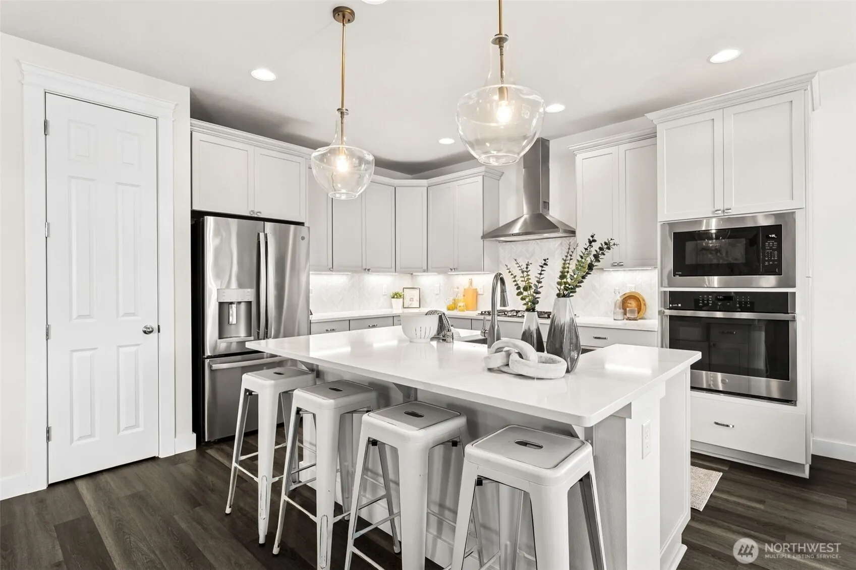 Experience a home masterpiece living in this stunning 5-bed, 4.75-bath, 3,540 sq ft Richland American home (2022) with tranquil lake views from every level. Soaring vaulted entry ceilings, walls of windows on each floor & a grand staircase create immediate grandeur. High-end finishes include California Closet upgrades throughout, lush tile & marble accents in bathrooms, custom kitchen backsplash & stainless appliances. The owner’s suite offers a spa-inspired bath & expansive walk-in closet. The finished walk-out basement with built-in bookcases provides versatile space for entertaining or a mother-in-law suite. Community park across the street. Minutes to Southworth Fast Ferry—effortless commutes to downtown Seattle, West Seattle & beyond!