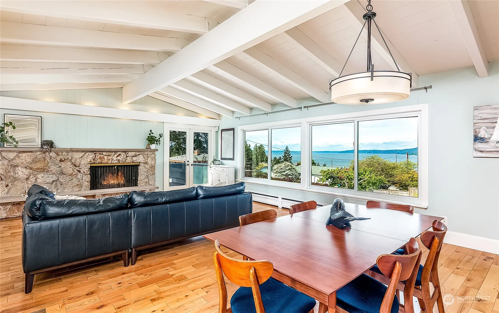 Charming PNW MCM home sits on two lots, both fenced for privacy, and on a quiet dead-end street! Soak in stunning sunsets over the sound, with breathtaking views of the mountains, all from your expansive deck. The main level offers a vaulted great room, with a stone fireplace and a wall of windows framing water views. Updated kitchen and dining areas complement the 4 bedrooms and 2 baths. Downstairs discover a spacious family room with a 2nd fireplace, laundry room, office, 5th bedroom and a bath. Solarium is perfect for nurturing plants or indulge in the newly installed shower. Abundant storage, a 2-car garage, and a workshop cater to your needs. Just moments from the Marina and Downtown. This home is a blend of serenity and convenience.