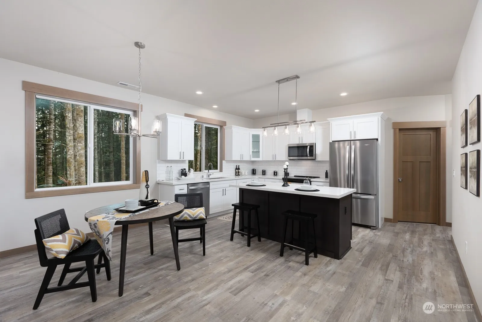Enjoy the peaceful view of the woods from your private deck in this near-custom new construction home with low maintenance landscaping. Not a tract home, finishes are hand-selected. Interior has upgraded finishes: quartz counters, tile backsplash, solid wood doors and trim, soaking tub, and energy-efficient heat pump for heating/cooling and hot water. Large stand-up crawlspace is great for storage. Public sewer. Stainless steel appliances and garbage disposal. Enjoy the Allyn waterfront amenities and all Lakeland Village has to offer: 3 community beaches, outdoor kitchens, playground, swimming area, dining at the bistro, and the 27 hole PGA golf course. It is now your turn to enjoy the great community of Lakeland Village.