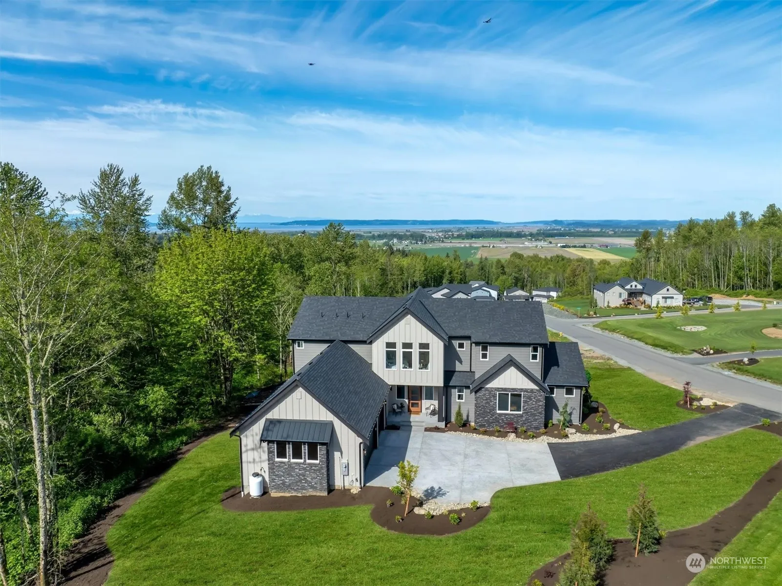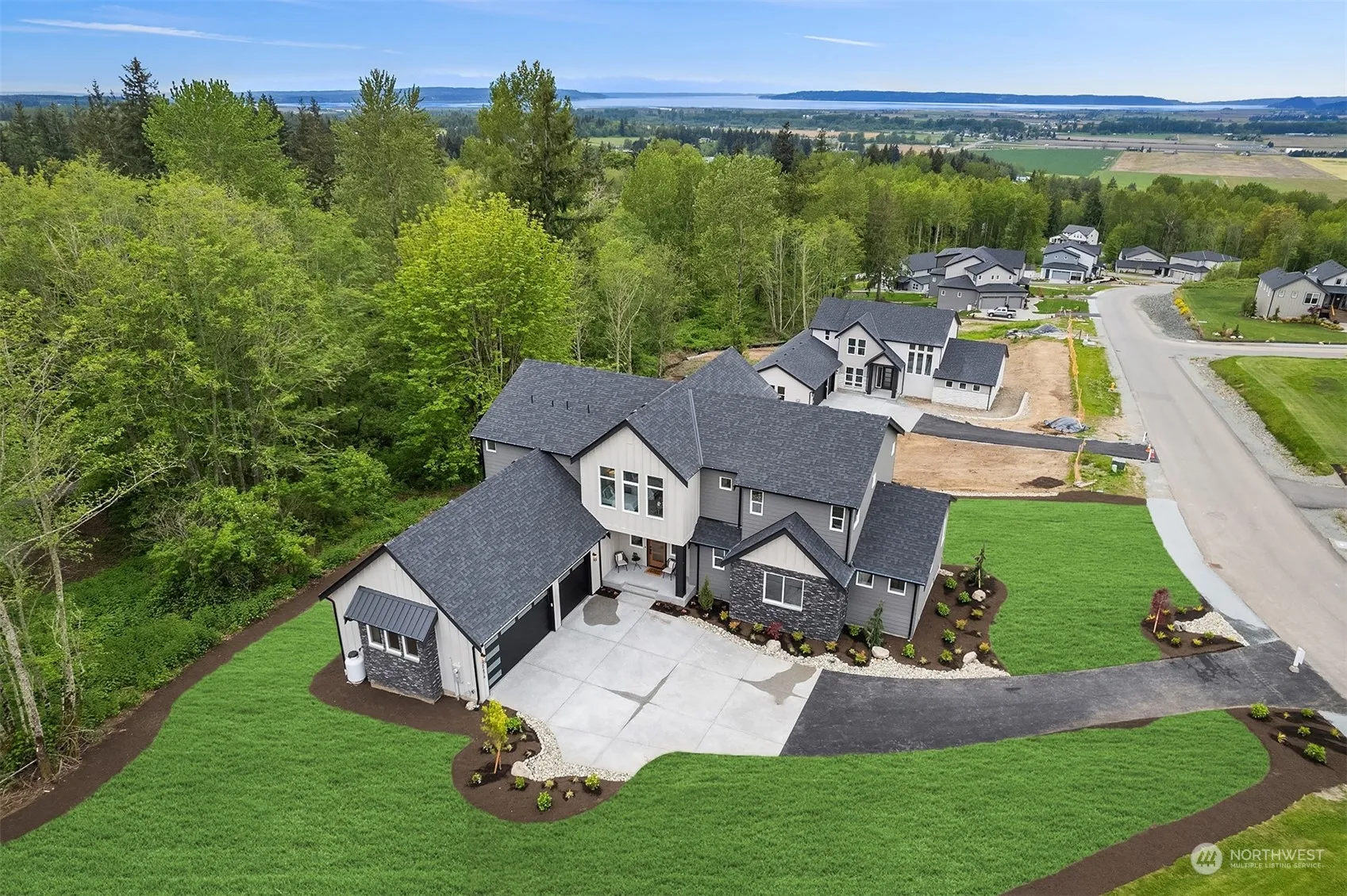 Private Dock, Mountain and Sound View Home @ Lake 16. 1+ Acre, Sound, Lake & Olympic Mountain Views. Fish from your non-motorized boat or on the private Lake 16 dock at Sixteen Lake. Hike to BULSON CREEK WATERFALL! Nothing like this in the Pacific Northwest. Perched on top of the hill. Get away from chaos, work from home. Modern living in the tranquil setting of nature. The OLYMPUS: Covered porch, Foyer, Soaring Great room: floor to ceiling fireplace & windows w/slider to covered view deck, Gourmet Island Kitchen w/walk-in pantry, Den/Office, Mud room. Primary en suite, w/5 piece bath on main. Second Primary w/en suite, soaking tub, large walk-in closet on second floor. Huge Bonus /Loft. 3 car garage. Amazing Sound & Mountain View