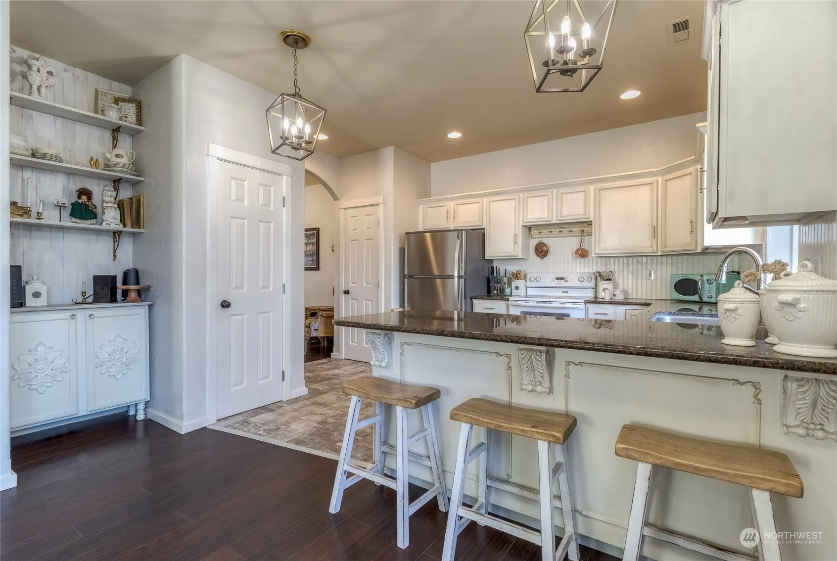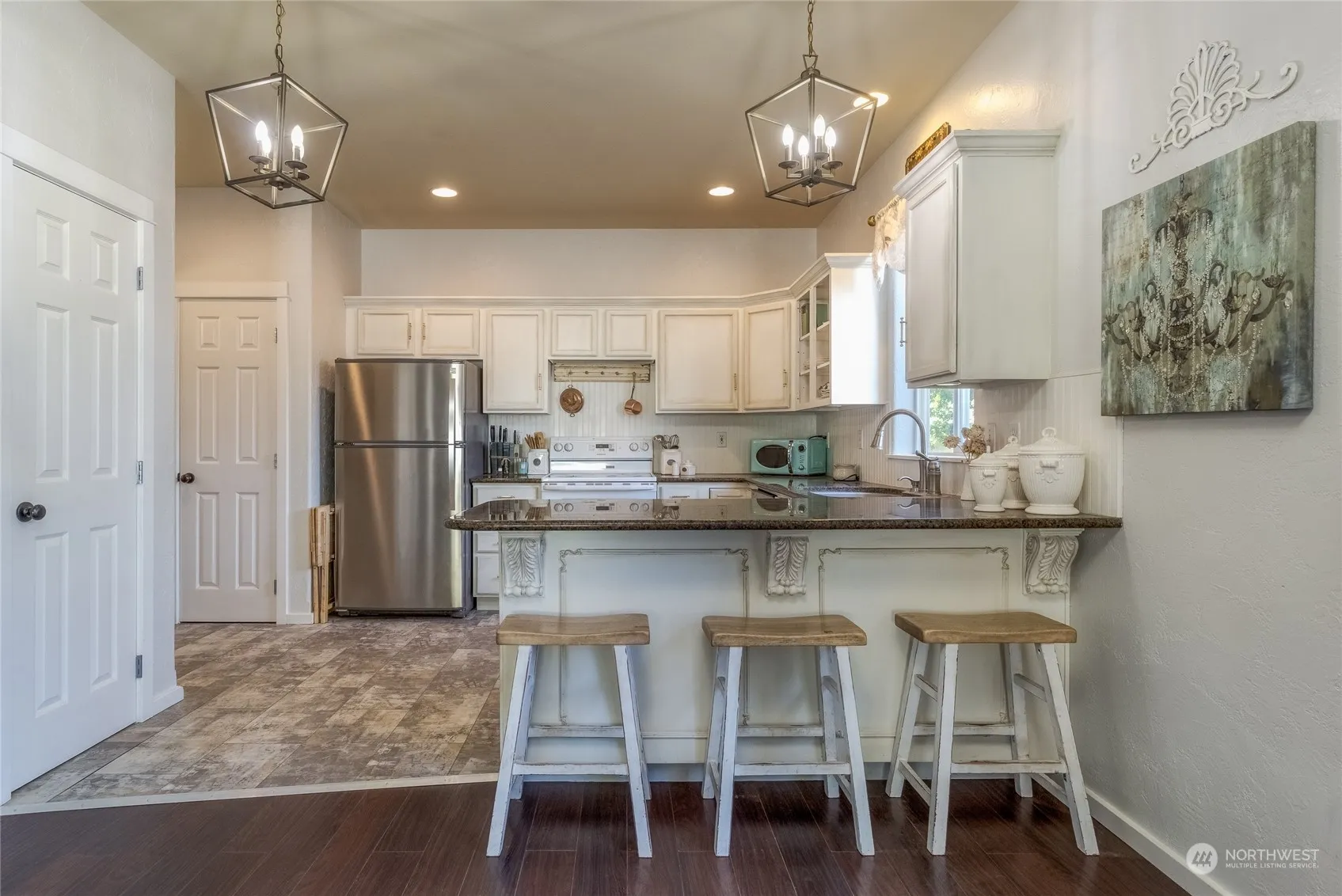 Craftsman style two story home, located near the end of a cul-de-sac. Formal entry and dining room, yet open floor plan with the kitchen and living room. Kitchen features pantry and bar seating open to the informal living room with chandelier and gas burning fireplace. Main floor also features convenient 1/2 bath and laundry room with added under stair storage. Primary bedroom is complete with ensuite closet and bathroom with double sinks. Darling upstairs bathroom with updated flooring and stylish shiplap walls. Outside you can enjoy your morning coffee on the shaded front porch, or host bbqs and roast marshmallows in the firepit in the fenced backyard. Double gate to the right of the garage for R.V. or Boat storage.