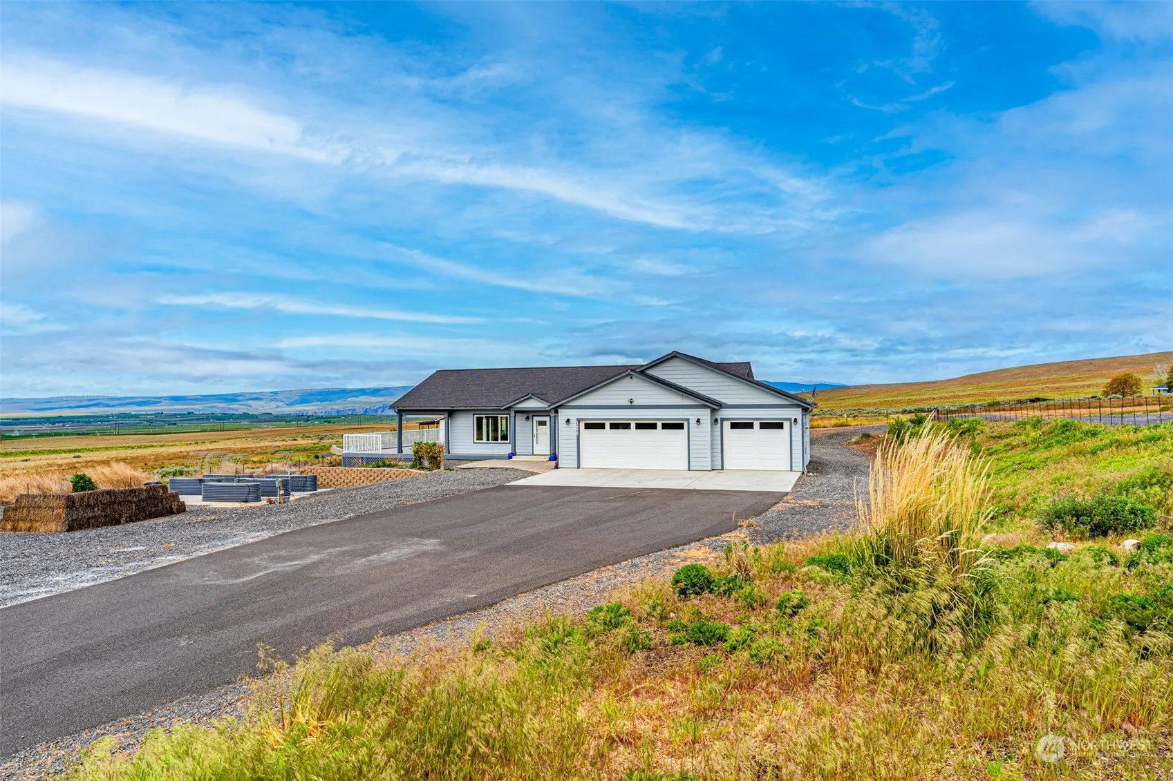 Escape to your own private retreat, perched atop 5 acres overlooking Quincy Valley’s scenic countryside. An open floor plan with vaulted ceilings and ample windows makes an impressive living space, bathed in natural light. French doors open to a large, partially covered deck, perfect for entertaining and situated well for privacy. You’ll have plenty of room to cook and entertain in the spacious kitchen, complete with island, eating bar, and quartz countertops. This 2018 3 bed/2 bath house has a large primary bedroom with ensuite bathroom and walk-in closet, and 2 generous guest rooms. PLUS, this property has a 3-car garage, raised garden beds, in-ground irrigation, low maintenance landscape, & wired for RV hook-up, hot tub and generator.
