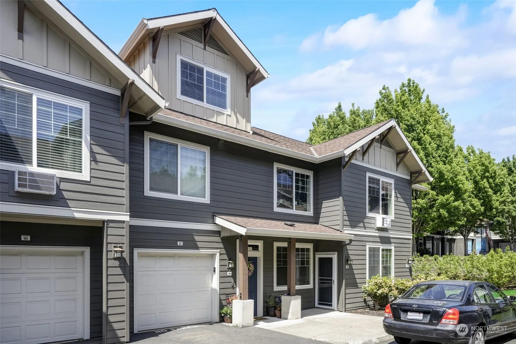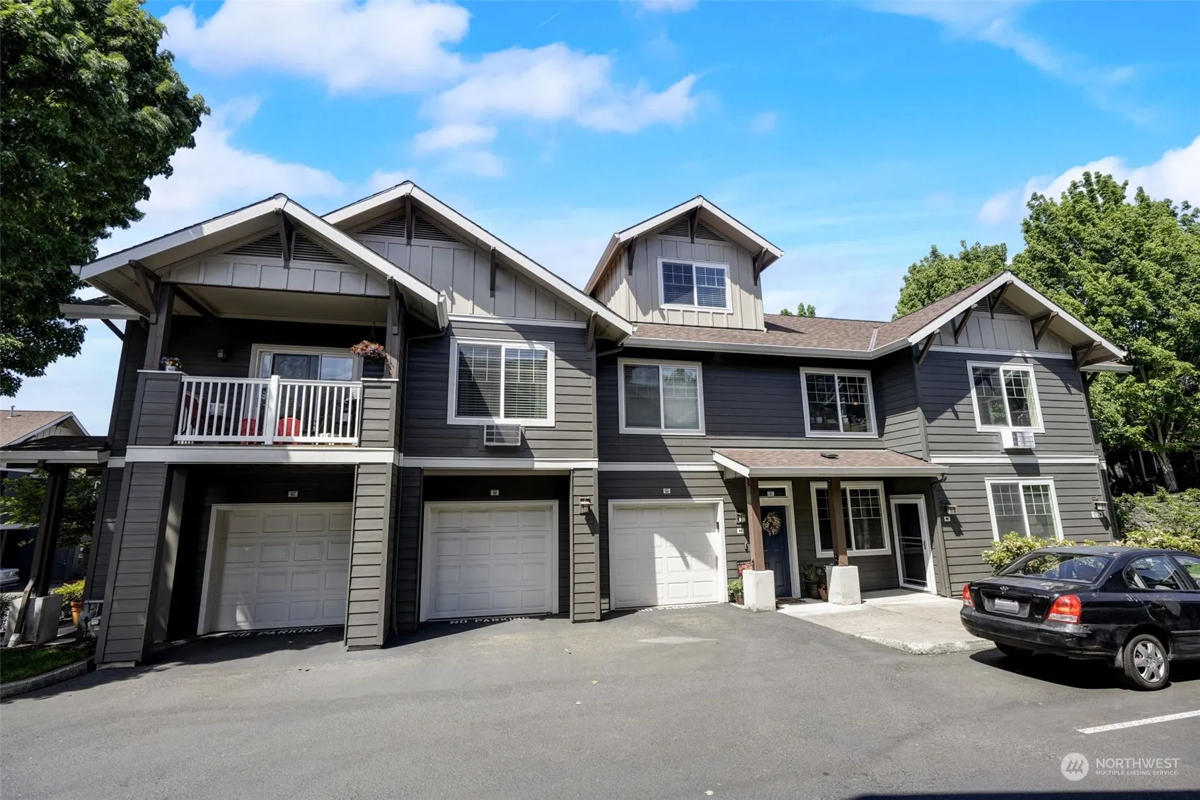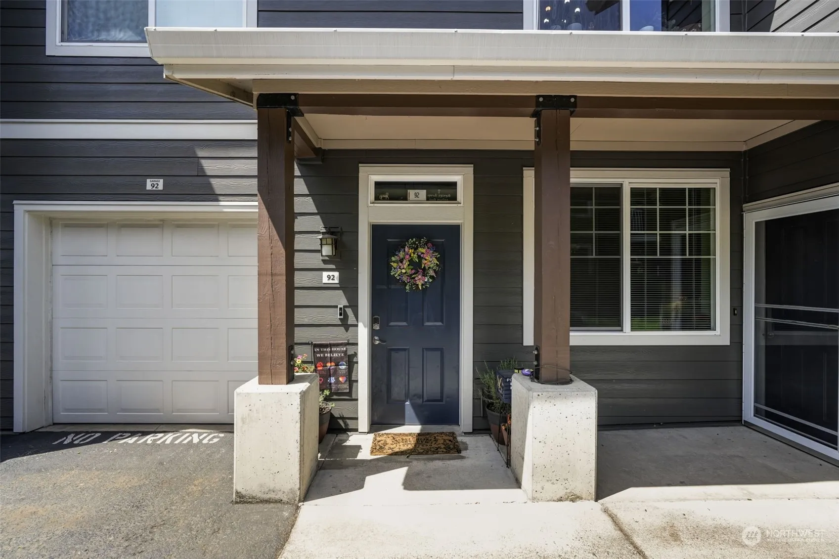 Step into this inviting home featuring a transom entry door and high ceilings, with a staircase leading to the living space above. The family room boasts a cornered marble fireplace, ceiling fan, and slider access to balcony. The galley kitchen shines with stainless steel appliances, granite counters, and a breakfast bar. Enjoy the luxury vinyl plank flooring and high ceilings throughout. The primary en-suite offers double closets and bathroom with soak tub and shower. A second bedroom, laundry closet, and full bath complete this charming space. Outside, there’s a covered front porch and a one-car garage with shelving. The Ellsworth on the Park HOA provides access to a party room, meeting room, pool, and gym, enhancing community living.