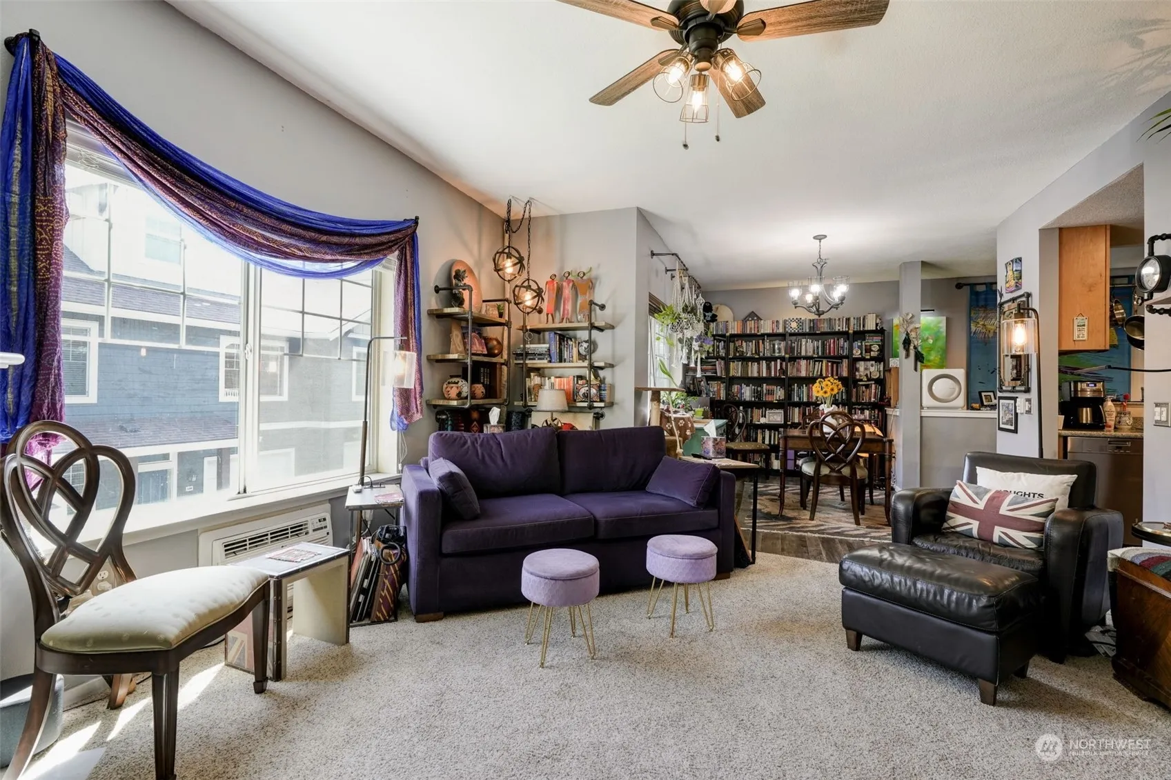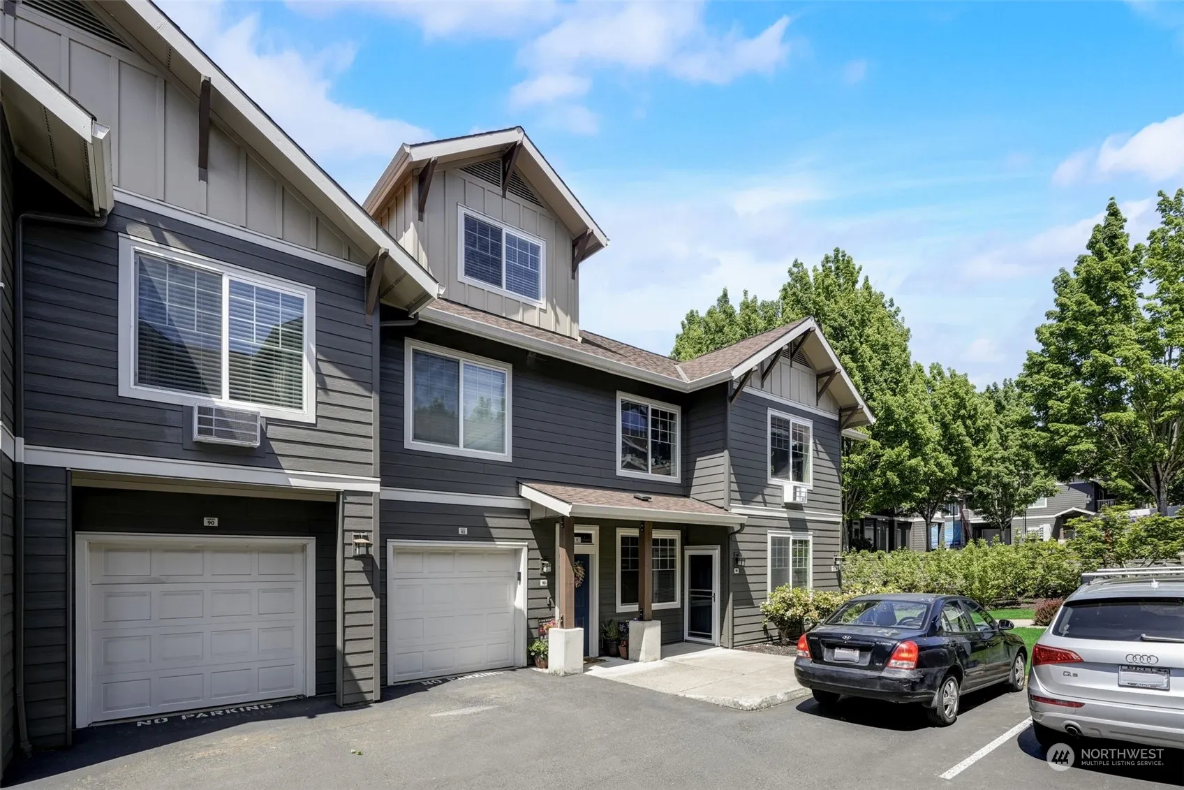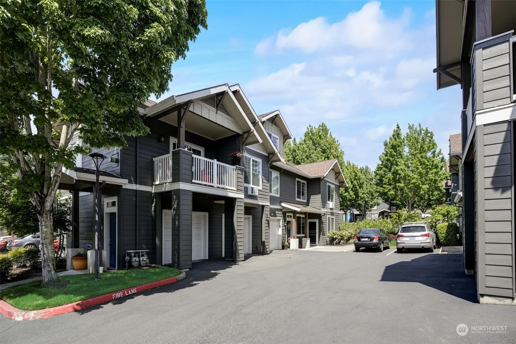 Step into this inviting home featuring a transom entry door and high ceilings, with a staircase leading to the living space above. The family room boasts a cornered marble fireplace, ceiling fan, and slider access to balcony. The galley kitchen shines with stainless steel appliances, granite counters, and a breakfast bar. Enjoy the luxury vinyl plank flooring and high ceilings throughout. The primary en-suite offers double closets and bathroom with soak tub and shower. A second bedroom, laundry closet, and full bath complete this charming space. Outside, there’s a covered front porch and a one-car garage with shelving. The Ellsworth on the Park HOA provides access to a party room, meeting room, pool, and gym, enhancing community living.