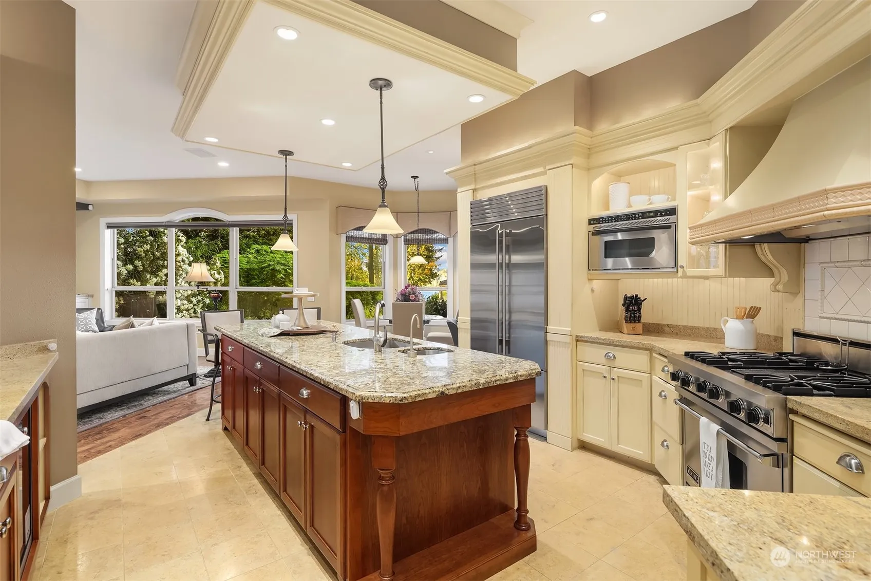 Turn-Key Haven in Mercer Island’s sought-after Northend. Stunning Bellevue skyline & lake views on just shy half acre. Impeccably cared for & spacious home w/ flowing spaces, high ceilings & so many custom upgrades! Enjoy year round, outdoor entertaining & al fresco dining from the covered, heated patio overlooking fairytale gardens in the fully fenced backyard. Ideal floorplan w/ main level dining & living rooms alongside the gourmet kitchen & great room flowing out to the deck. Main floor primary suite w/ 5 pc bath, office, guest room & 3 add’l BDRs up. Jaw dropping landscaping, enclosed dog run, storage shed & 3 car garage. Enjoy a dream commute & award-winning schools. Walk to Luther Burbank Park and MI Community Center. It’s all here!