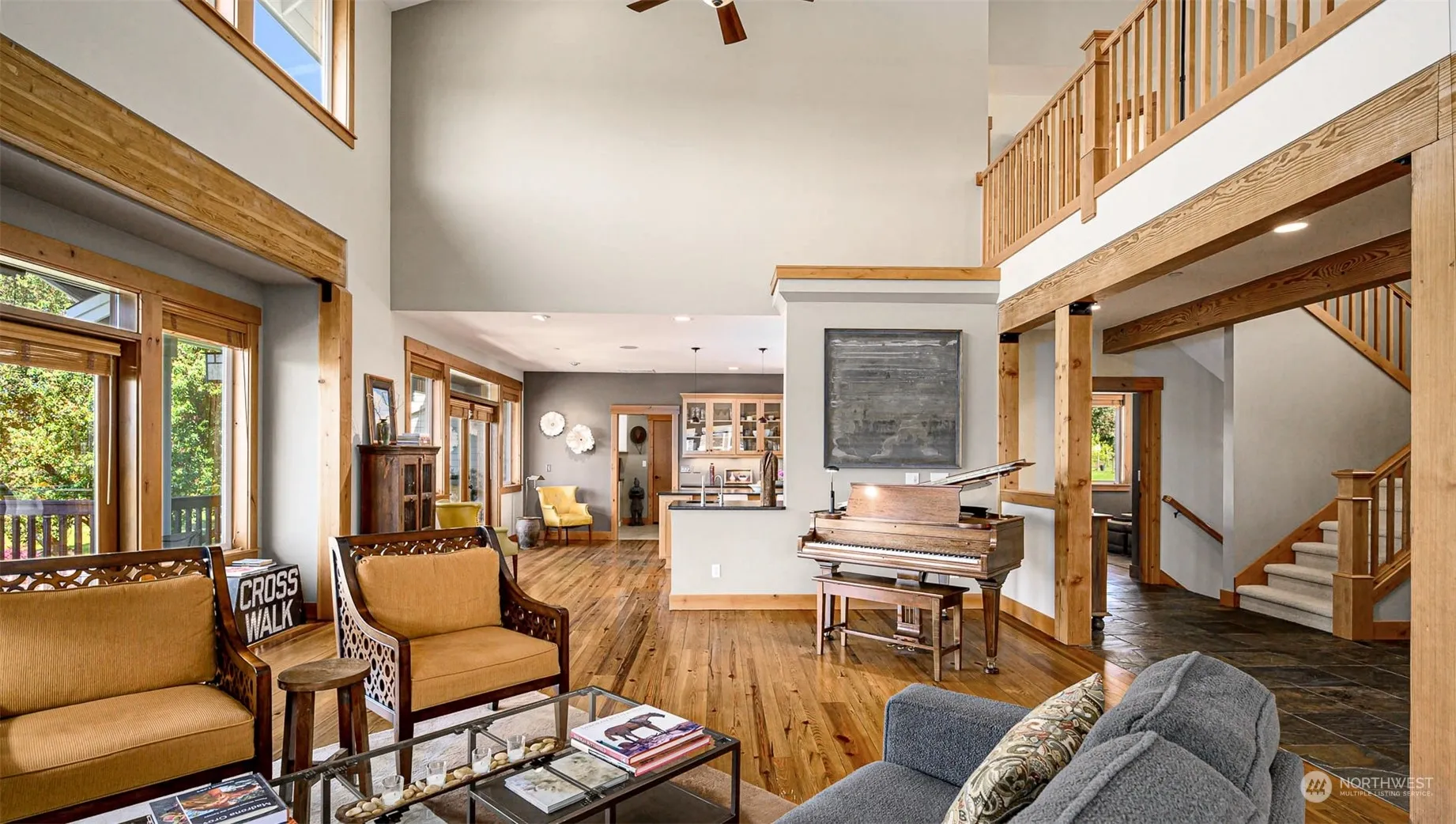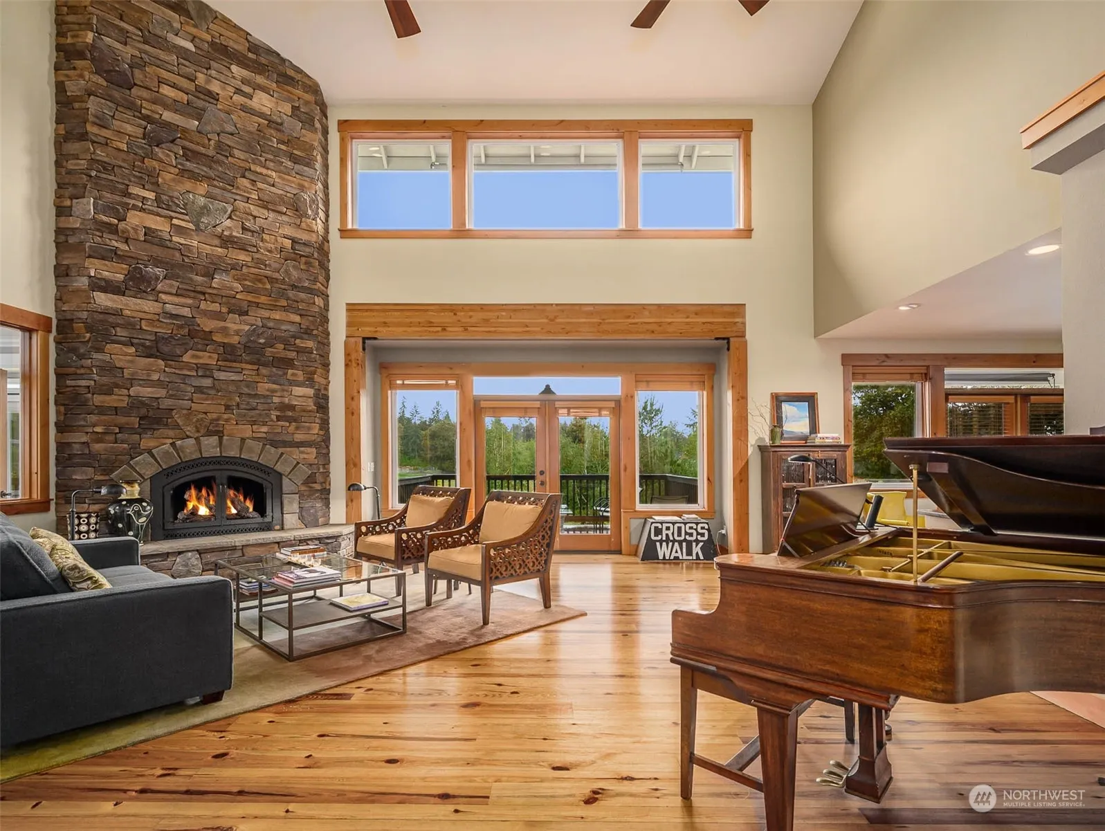 Experience the exquisite calm of a sunny, open landscape! This impeccable home is just shy of 4,000 sq ft, with 4 bdrms and 3.5 bath. It is sited between two stands of Madrona on 3.5+ acres of private landscaped spaces and pastures. Property is rare with direct access to a 650-acre waterfront park. The interior is warmed by knotty alder doors and trim, reclaimed heart-pine floors, maple cabinets, a soaring magnificent stone fireplace in a vaulted great room. Every finish detail is high-end; appliances, bathrooms fixtures, lighting fixtures, hardware, covered porches and flooring. Imagine gardening, horseback riding, walks, or just enjoying sweeping views of horse pastures, abundant wildlife, amazing skies and sunsets.
