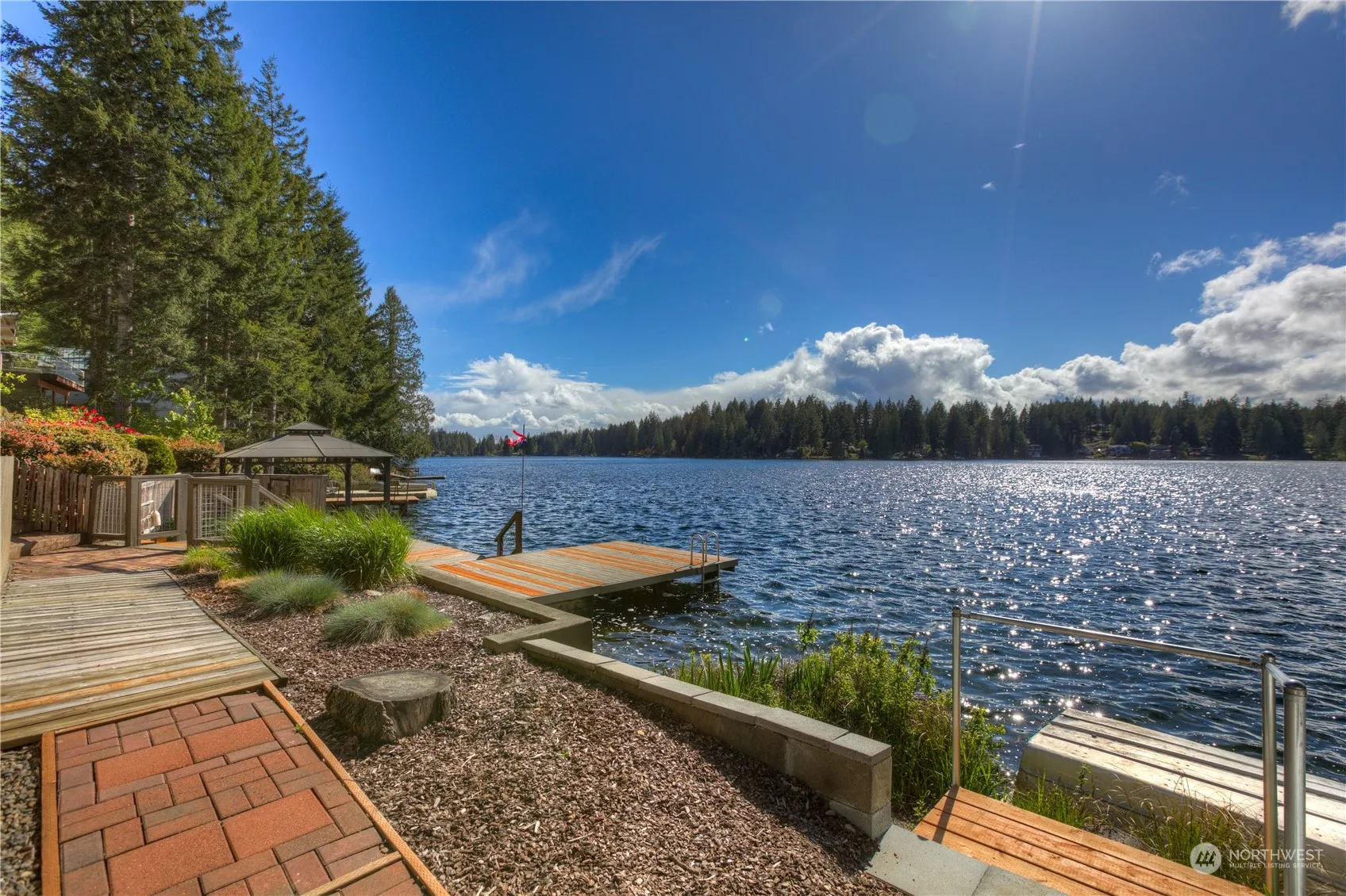 INCREDIBLE Benson Lake Lifestyle featuring a meticulous home w/stunning views + 75′ of lakefront. A 2 bed (optional 4) + 4 bath + bonus + study + rec rm in a magnificent layout w/the Primary Suite on main. The 2 extra guest rms are on lwr & upper flrs. Stunning kitchen & open concept living area, gorgeous hardwoods on main + a wall of windows to the expansive lake views. Relax & entertain w/ease on the deck overlooking the lake enjoying magical sunsets. Terraced gardens w/fruit trees are sure to please & complete the beautiful setting. Benson Lake is a no gas powered watercraft lake offering great fishing, paddleboarding, swimming & kayaking. Consider Membership at the Mason-Benson C’mnty Club w/events & pickleball courts. No HOA. LOCATION!