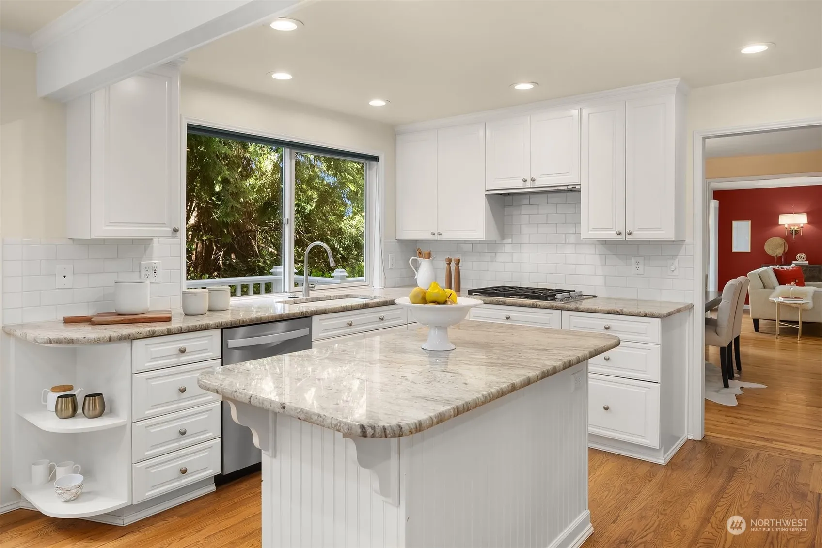 Discover timeless elegance in this traditional Buchan on Mercer Island’s coveted Westside. Picture perfect, storybook curb appeal nestled down a private lane, walkable to award-winning schools, shops & parks. This one checks all the boxes: light & bright with hardwoods throughout, walls of paned windows, skylights & updated gourmet kitchen that flows out to the huge wrap-around deck & peek-a-boo western lake views. An ideal floorplan provides space & options for everyone- 4 bedrooms up together + spacious bonus room & office/5th bedroom on main. Large lot with abundant parking, flat driveway & mature, landscaped gardens. Welcome to this very special home – the perfect setting for making lasting memories.