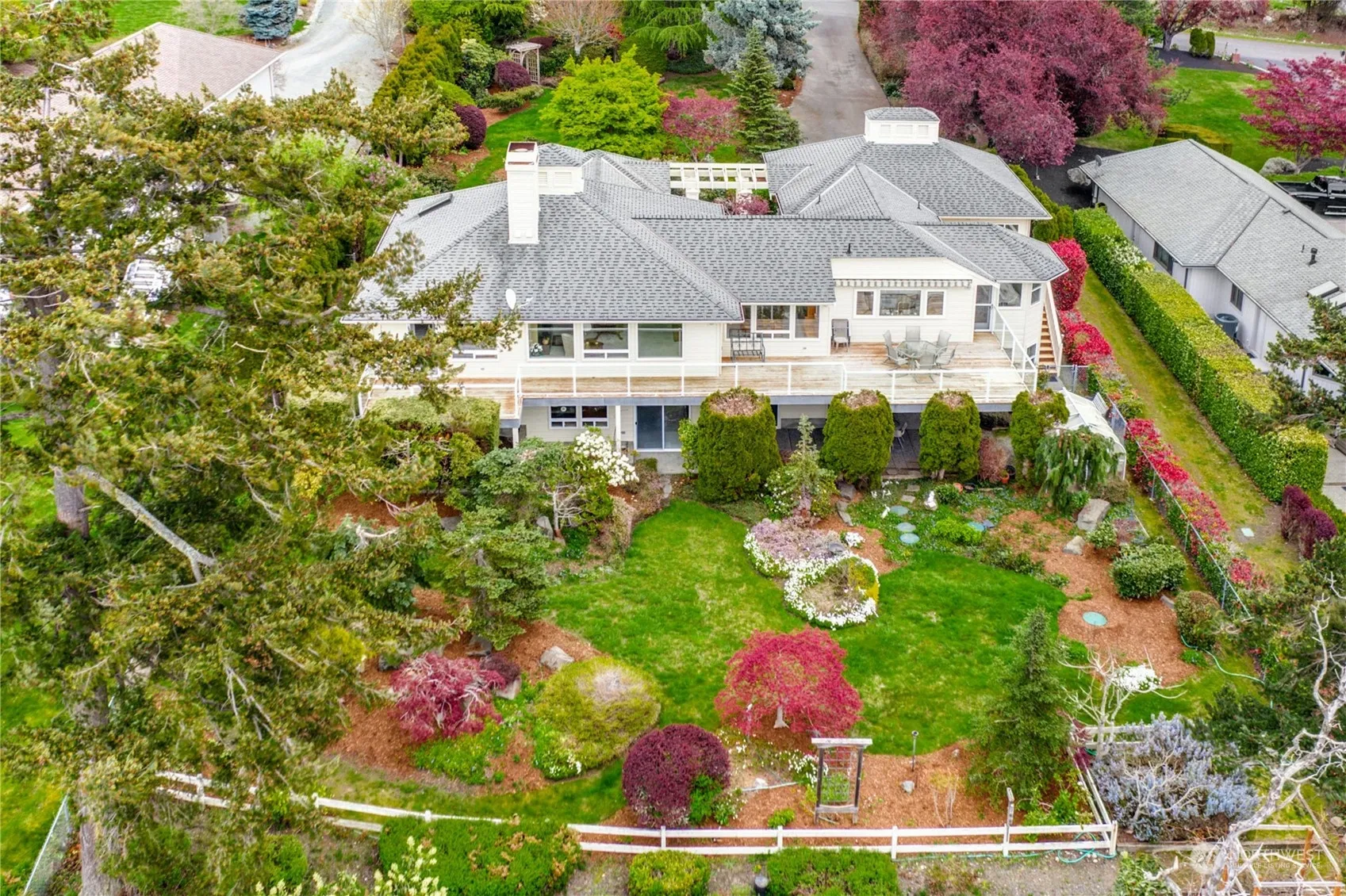 Almost 100ft of waterfrontage with sweeping views of Saratoga Passage & the Olympic Mountains, 886 Sands Lane is Camano Island waterfront living at its finest. This gorgeous 3bdrm, 3bth, 3,805sqft home is nestled on 0.6 acres & tucked away on a privately owned lane. The primary bedroom, great room & kitchen are all conveniently located on the main floor w/ views from every room. The primary bdrm is complete w/ ensuite, walk-in closet & deck access perfect for sunset viewing. The 2nd floor has 2 additional bdrms, full bthrm, large flex/rec space, an office & storage. The grounds are beautifully landscaped w/ a parklike feel. Beach access is beside the property & for residents only. Enjoy island living w/ no ferry & be close to all amenities.