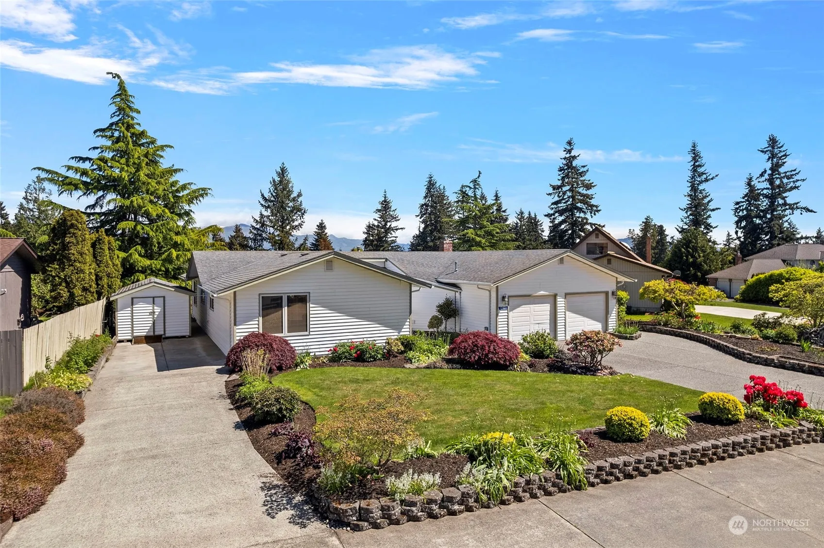 Don’t miss this charming well-maintained rambler situated on the first fairway of the Skagit Golf & Country Club! Stunning & expansive views of the golf course & mountains will always delight. The oversized patio is the perfect place to entertain, relax, or enjoy spectacular sunrises. Upon entry, the generous living room offers vaulted wood paneled ceilings, cozy gas fireplace w/ stone & bench, tons of windows to soak in the views, & two sliding glass doors out to the massive patio. Tasteful kitchen offers plenty of counterspace & opens up to the family room. Views abound from this lovely home just waiting for its’ new owner’s personal touches! Gorgeous low maintenance yard, water feature, RV parking, 3rd garage & shed! Prime location!