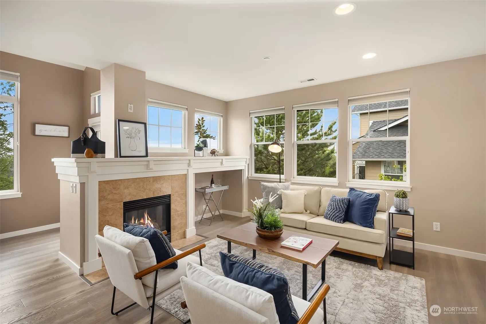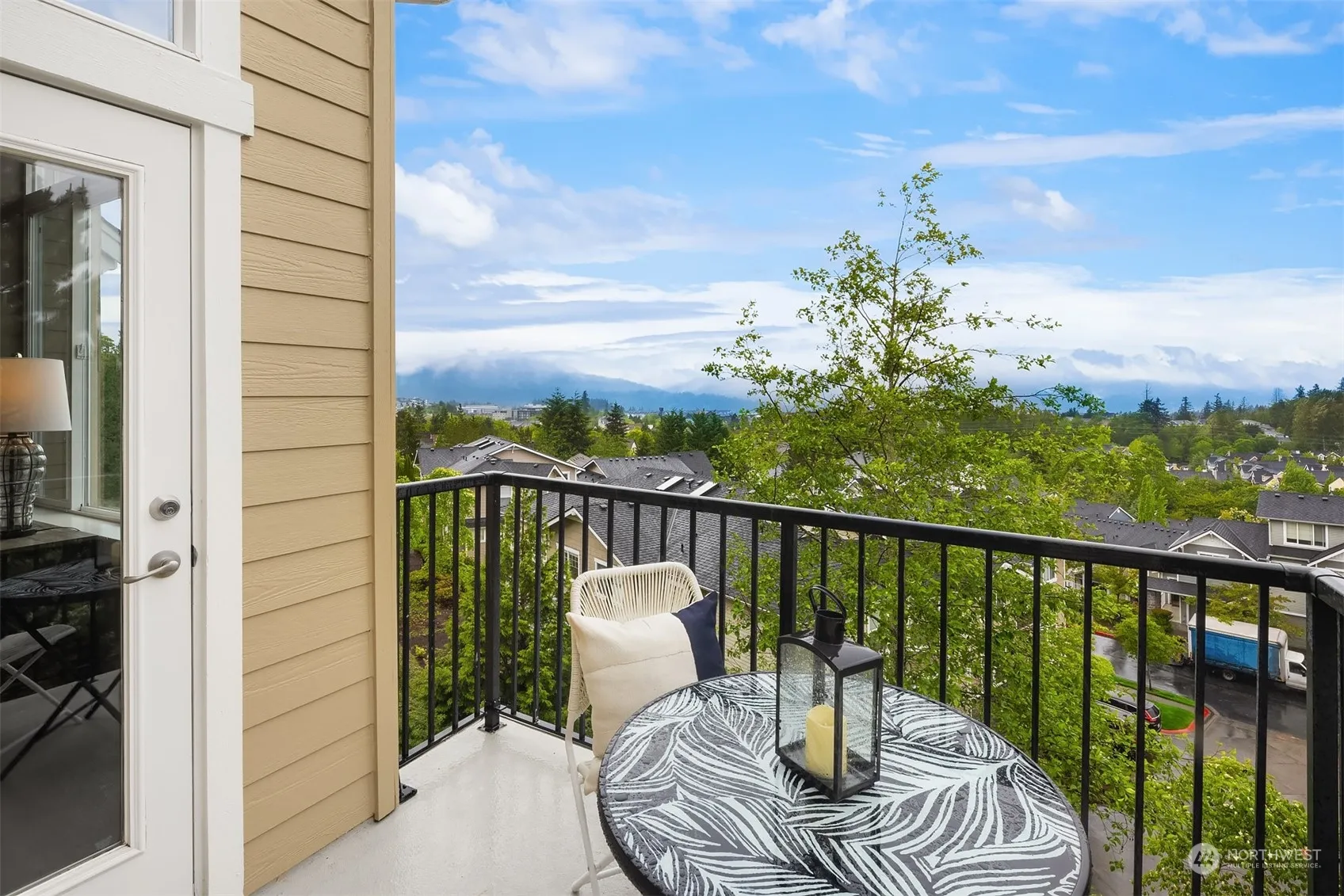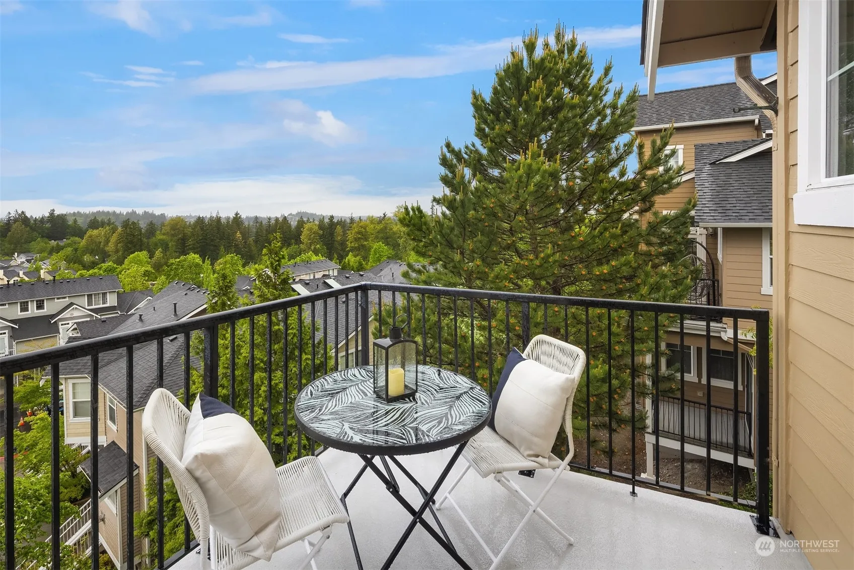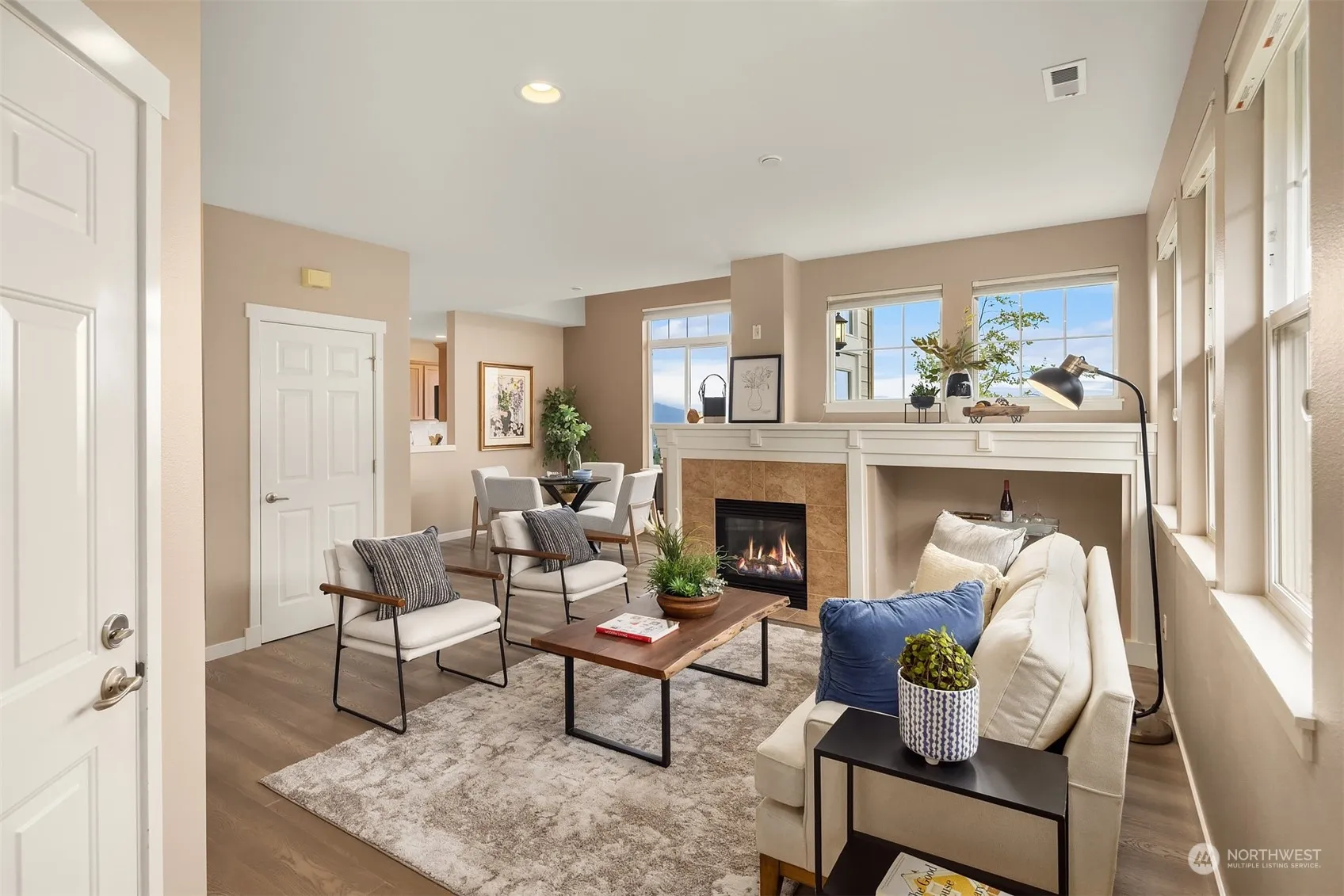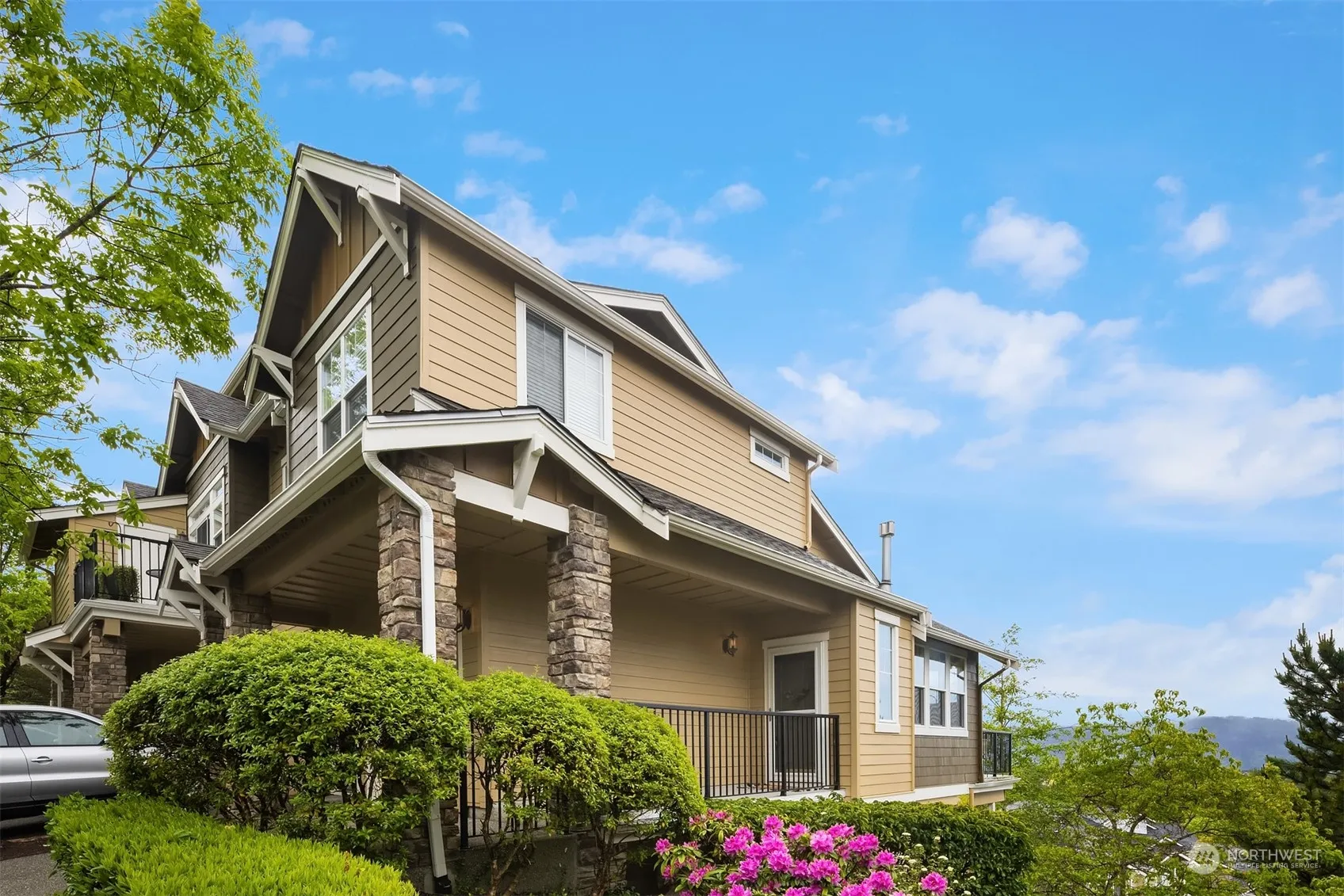 The perfect blend of location, lifestyle & convenience, this stylish end unit boasts panoramic westerly views, with breathtaking sunset & mountain vistas from every room and patio. Main floor primary suite for convenience & comfort, complete with spacious walk-in closet. New appliances in 2024 and updated in 2017 with new carpets, hardwood floors, kitchen countertops & backsplash, there’s nothing to do but move in. Laundry, full bath and 2 queen-sized bedrooms upstairs, or make one a perfect WFH office. Don’t miss 2 extra WI closets, & huge walk-in attic space for add’l storage. One car garage, w/ driveway parking. Walk to Grand Ridge Plaza, Central Park, Blakely Hall, & nature trails. Pre-inspected. No rental cap