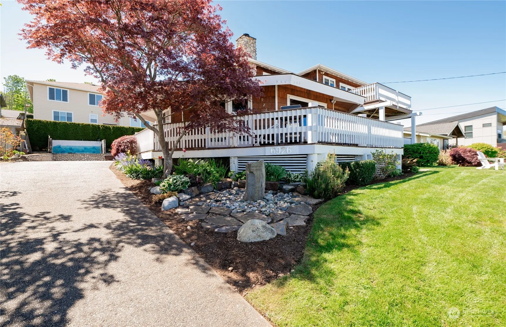 Turn key money making opportunity or your new water view dream home…you decide! Professionally managed short term vacation home is being offered fully furnished & completely ready for the prime rental season. Featuring a new roof, air conditioning and flooring, this 4 bedroom/2.75 bathroom Point Whitehorn coastal charmer was designed to capture the sweeping bay and mountain views. Relax & unwind from multiple decks, without concern about bank erosion or stability due to location. The dramatic rock fireplace surround & the soaring wood ceiling thoughtful design details create a warm & inviting atmosphere. Main level primary suite with direct deck access. Stellar location nestled between Seattle & Vancouver, BC…don’t miss this!